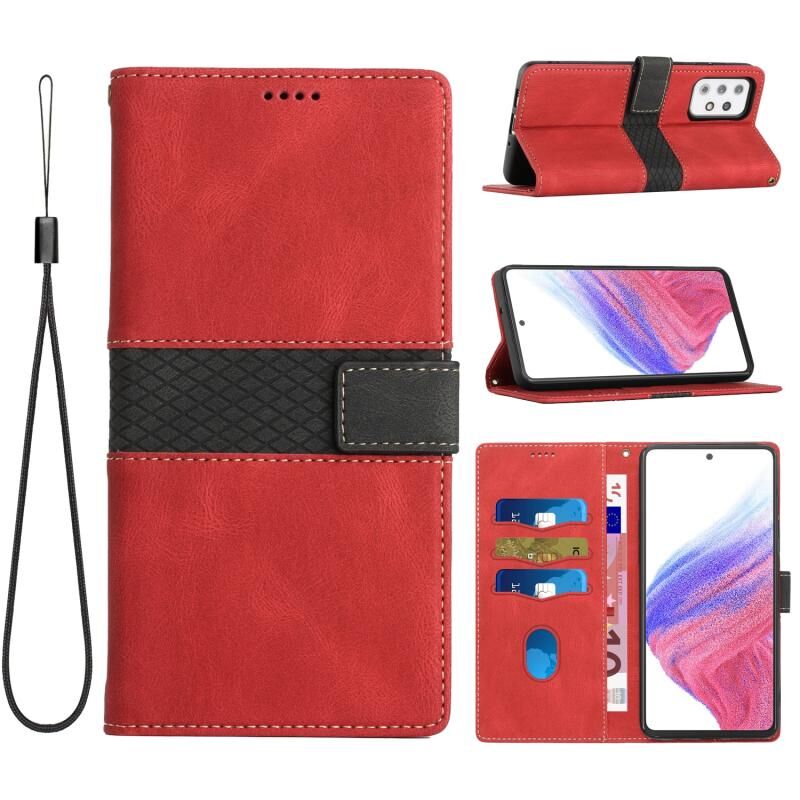 Για Samsung Galaxy A53 5G Grid Stitching δερμάτινη θήκη τηλεφώνου με κορδόνι (Κόκκινο)