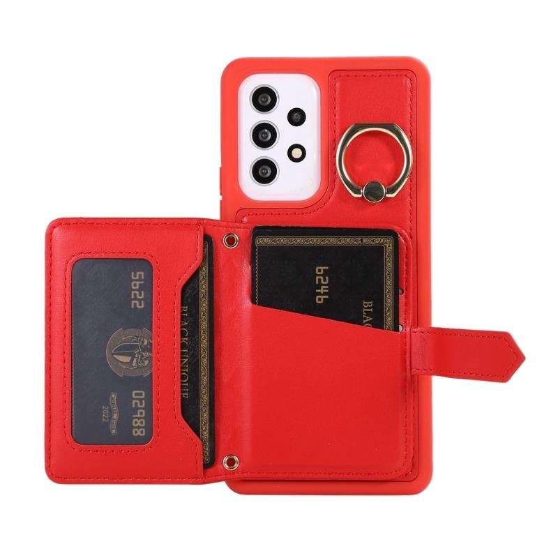 Για Samsung Galaxy A53 5G Οριζόντια κάρτα τσάντα τσάντα δαχτυλίδι κάτοχος υπόθεση τηλεφώνου με διπλό κορδόνι (Κόκκινο)