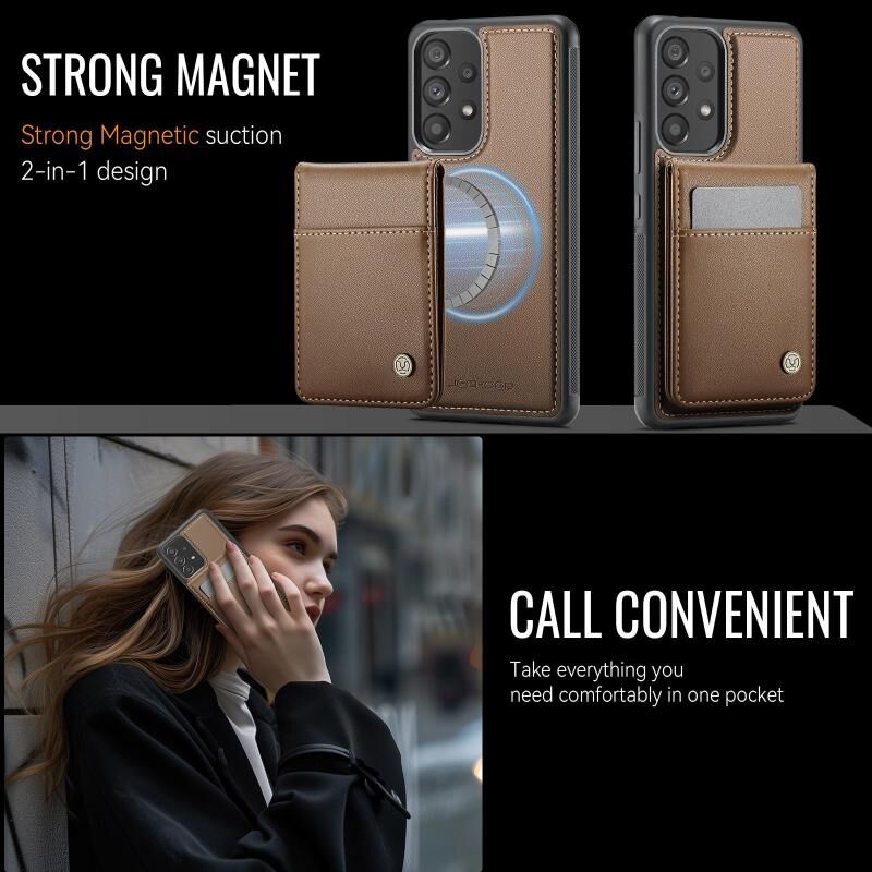 For Samsung Galaxy A53 5G JEEHOOD J06 British Style RFID MagSafe Card Bag PU Phone Case(Brown) (JEEHOOD)