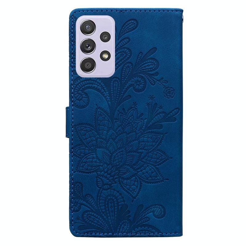 Θήκη κινητού τηλεφώνου Samsung Galaxy A53 5G από PU με δαντελένιο λουλουδάτο ανάγλυφο και μαγνητικό κούμπωμα, με λουρί καρπού (Πράσινο)