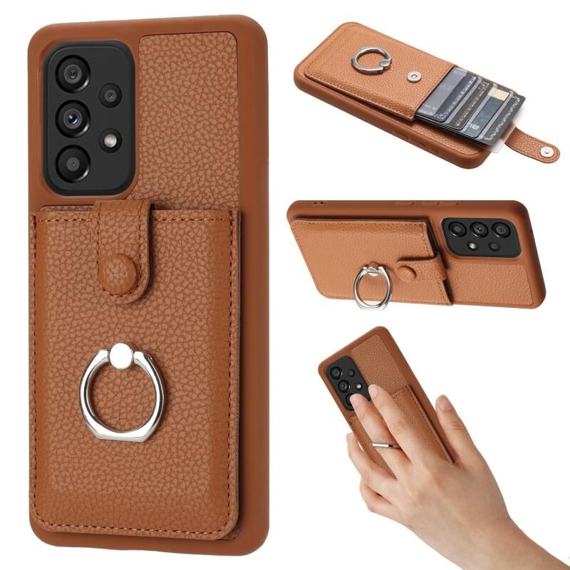 Για Samsung Galaxy A53 5G Litchi Υφή Σχεδίαση κάρτα τσάντα τσάντα δαχτυλίδι κάτοχος υπόθεση τηλεφώνου (καφέ)
