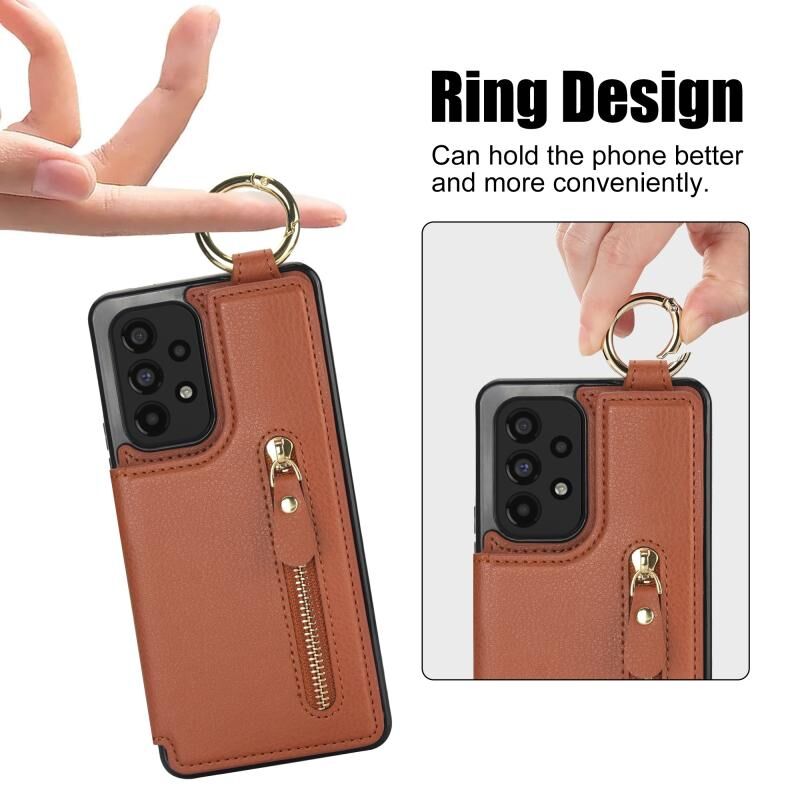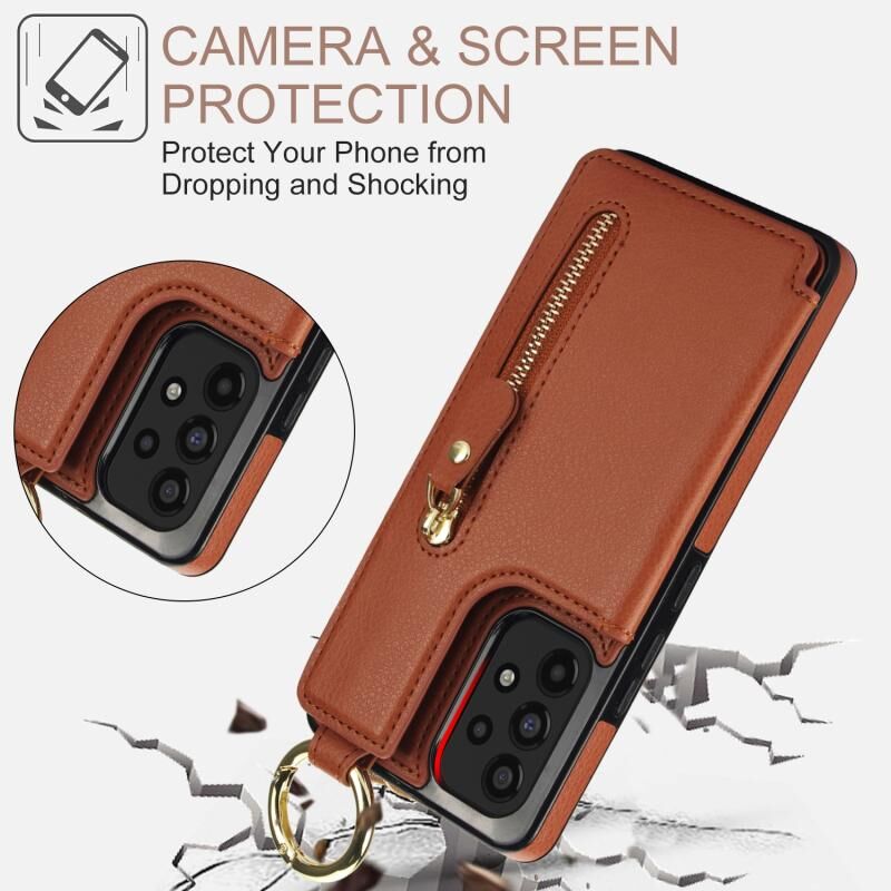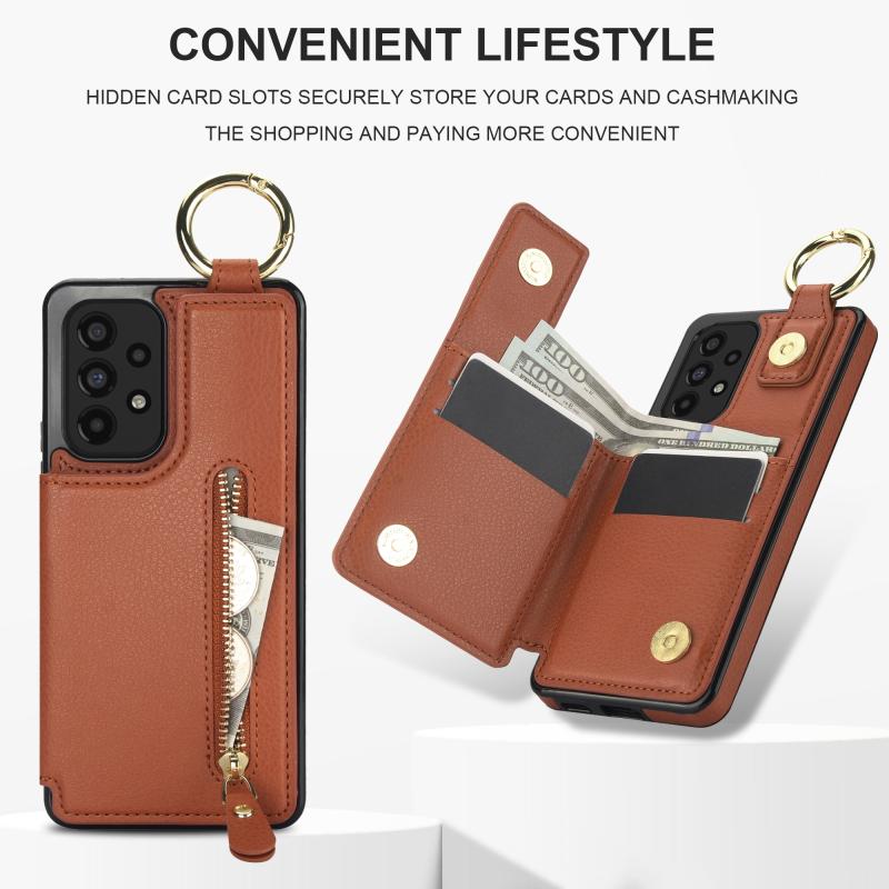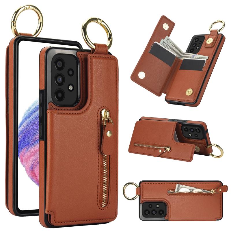 For Samsung Galaxy A53 5G Litchi Texture Zipper Double Buckle Card Bag Phone Case(Brown)