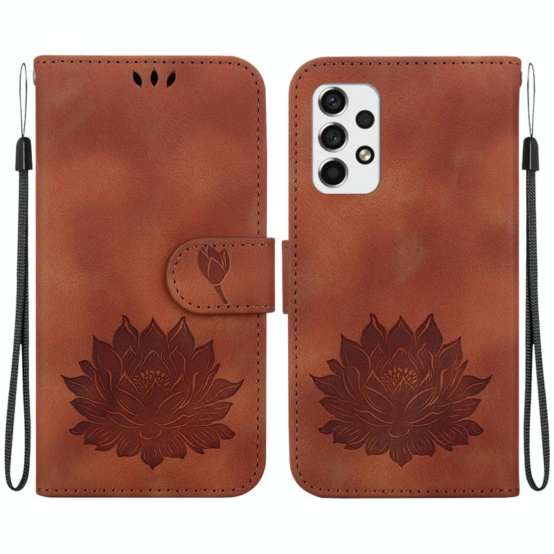 For Samsung Galaxy A53 5G Lotus Embossed Leather Phone Case(Brown)
