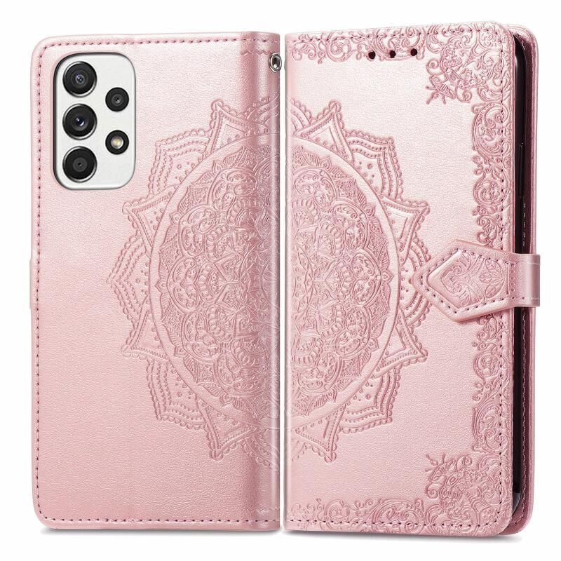 Για Samsung Galaxy A53 5G Mandala λουλούδι ανάγλυφο Flip υπόθεση τηλεφώνου δέρμα (Rose Gold)