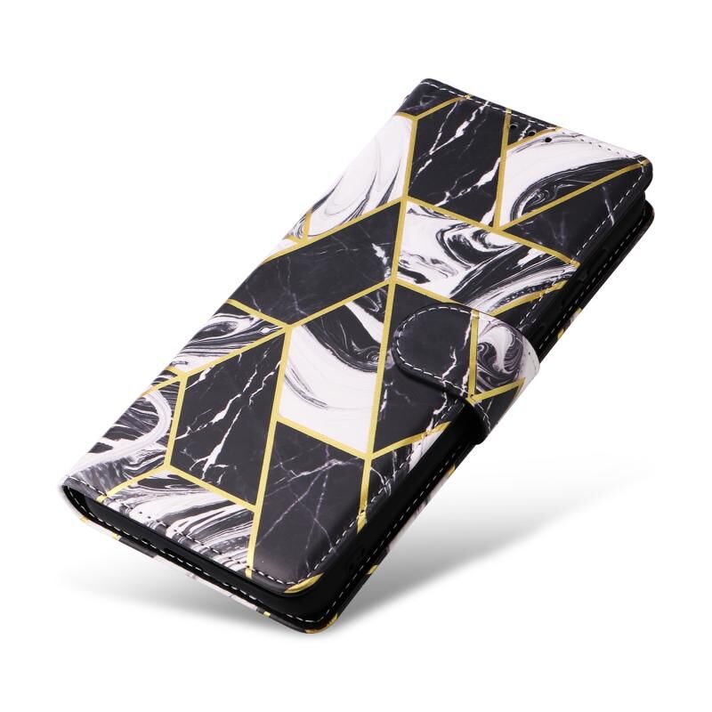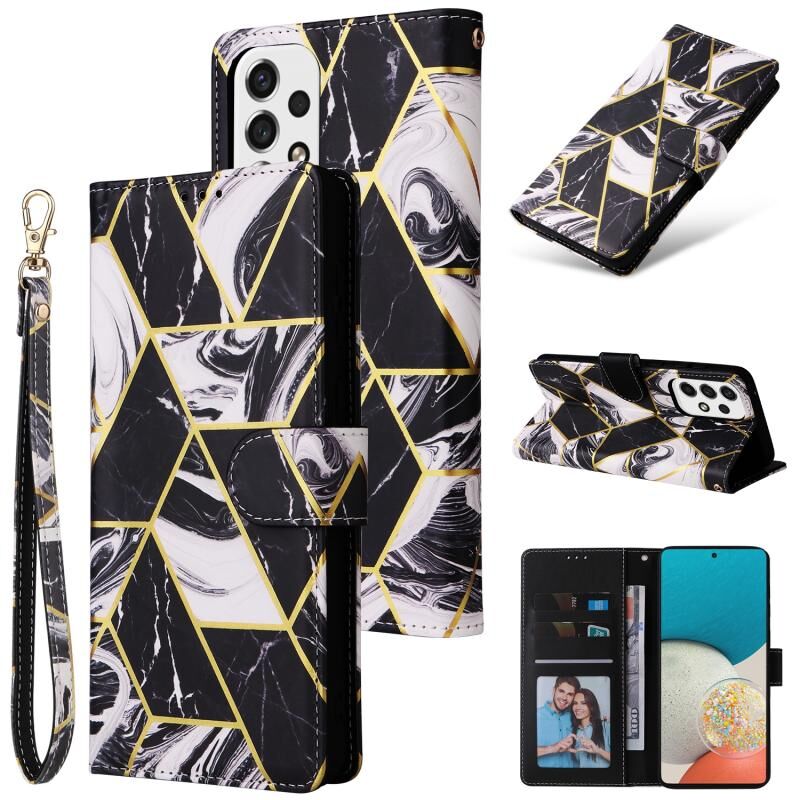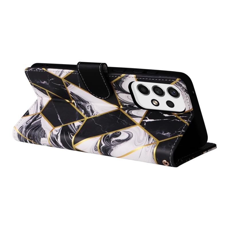 Θήκη τηλεφώνου Samsung Galaxy A53 5G από δέρμα με ραφές και μαρμάρινη επίστρωση μπρονζέ (Μαύρο)