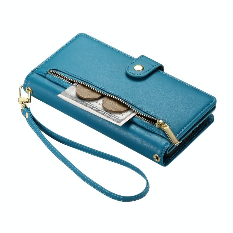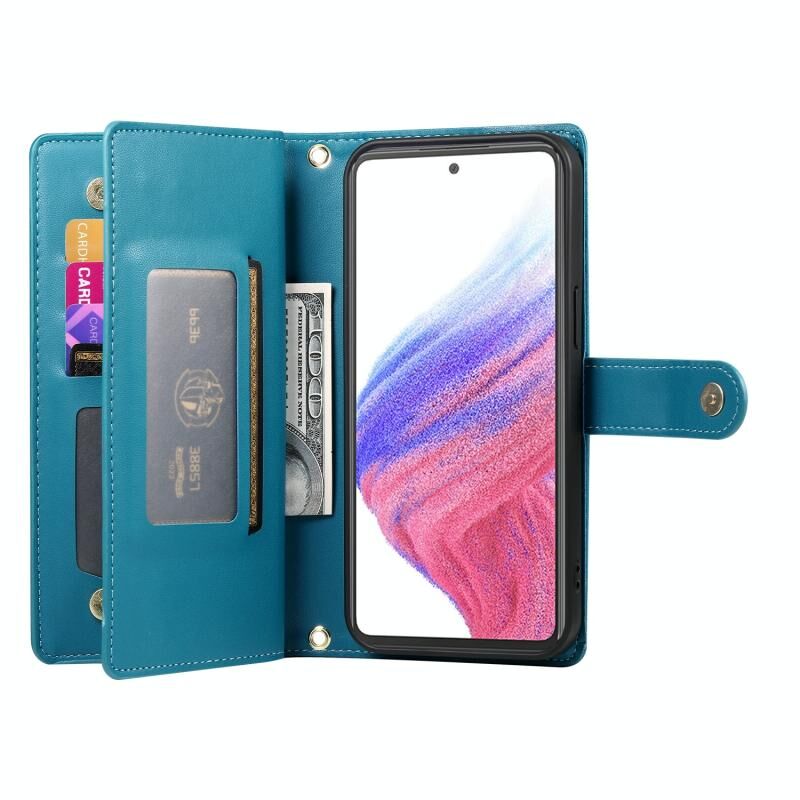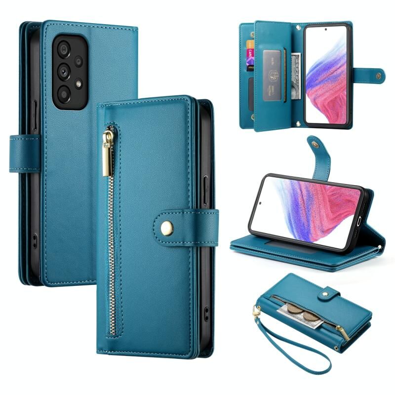 Για Samsung Galaxy A53 5G Nine Card-slot φερμουάρ πορτοφόλι τσάντα δερμάτινη θήκη τηλεφώνου (μπλε)