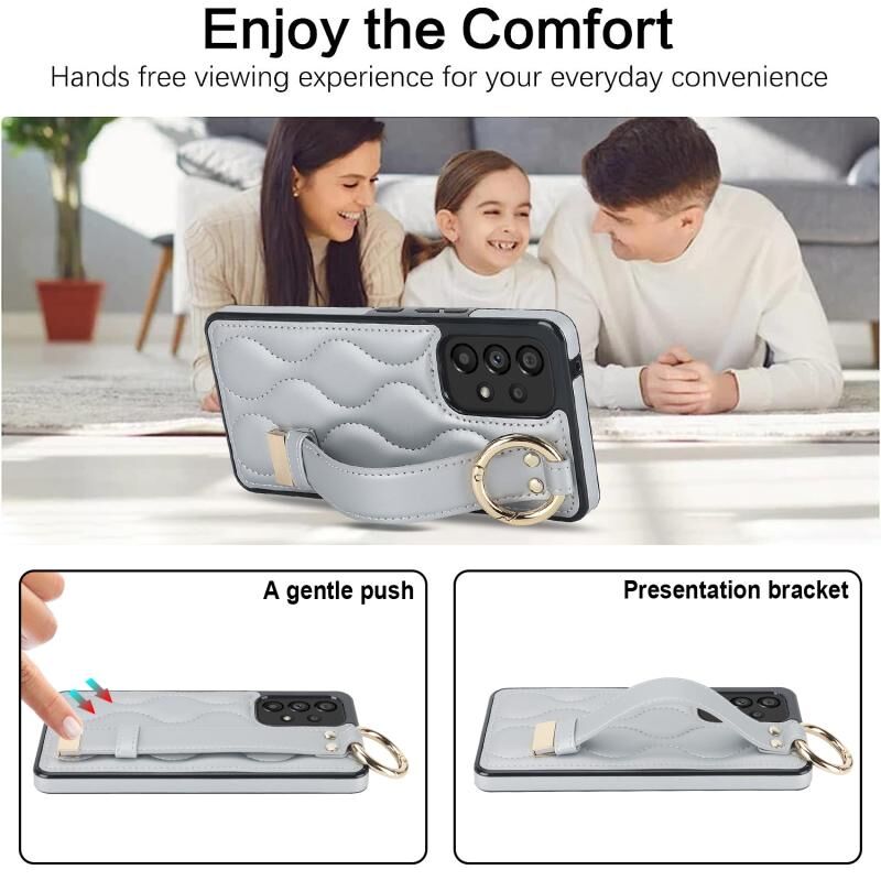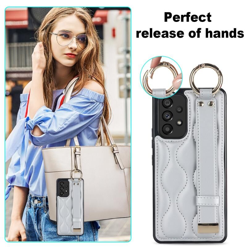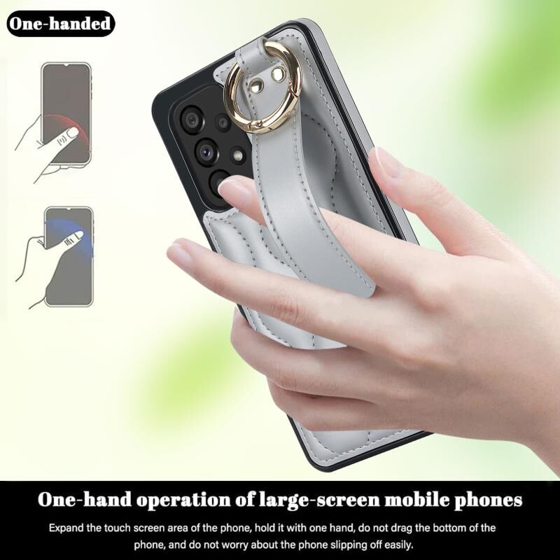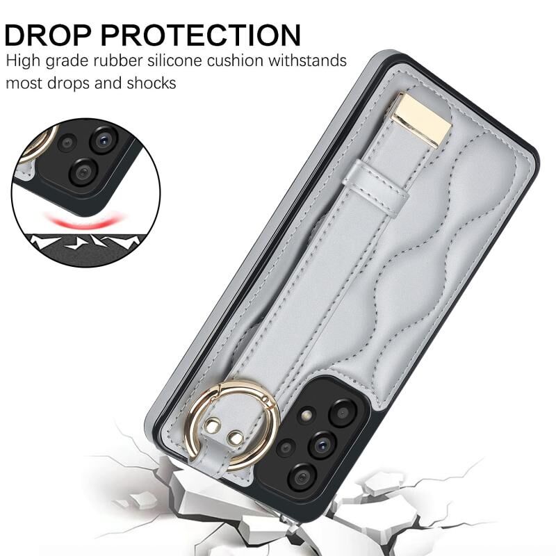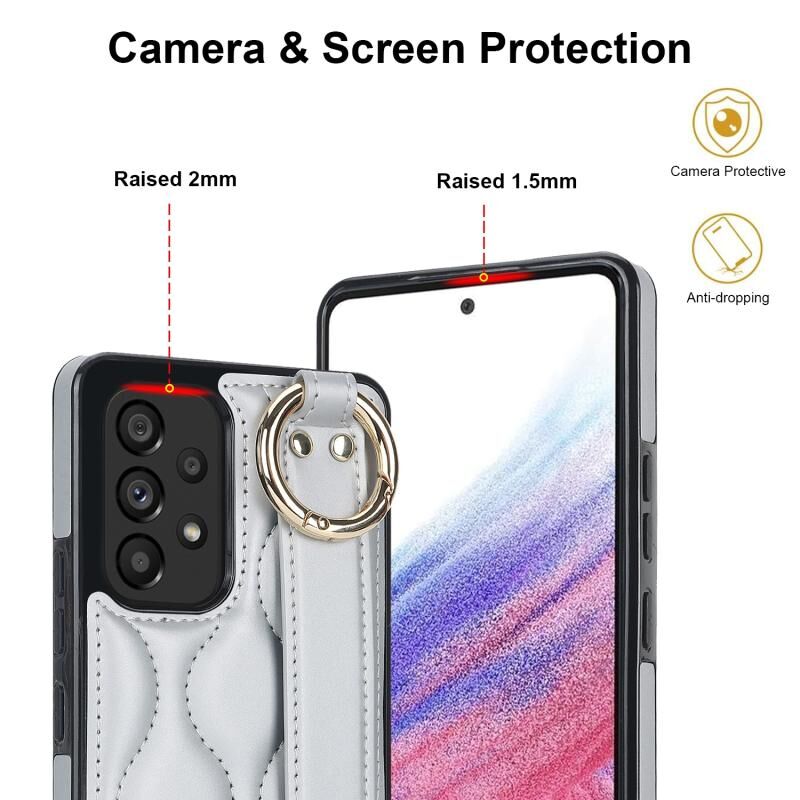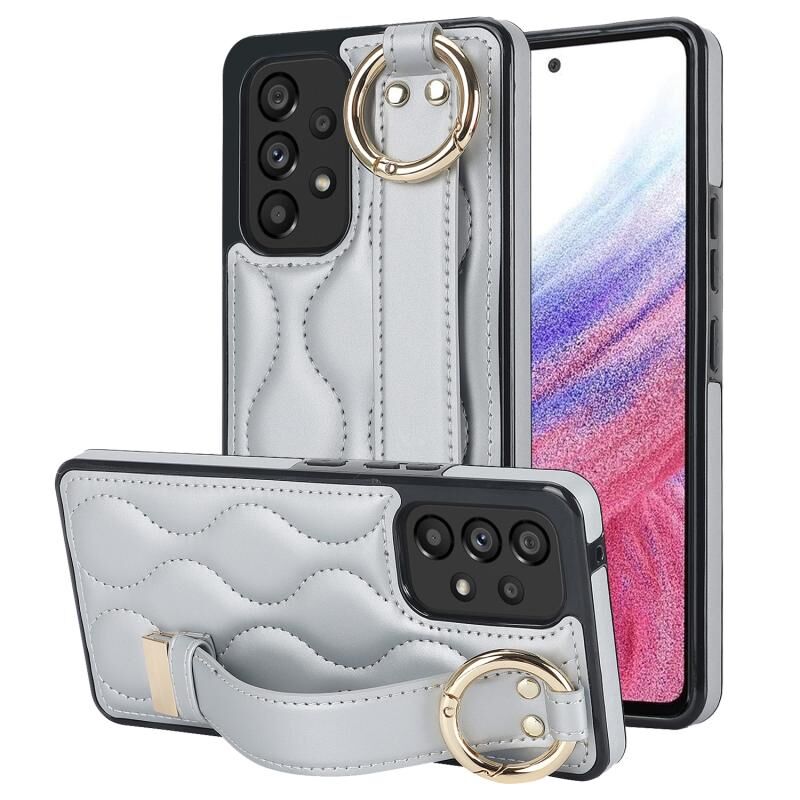 Για το Samsung Galaxy A53 5G Αντιολισθητική θήκη τηλεφώνου PU πλήρους κάλυψης δακτυλίου με ζώνη καρπού (Ασημί)