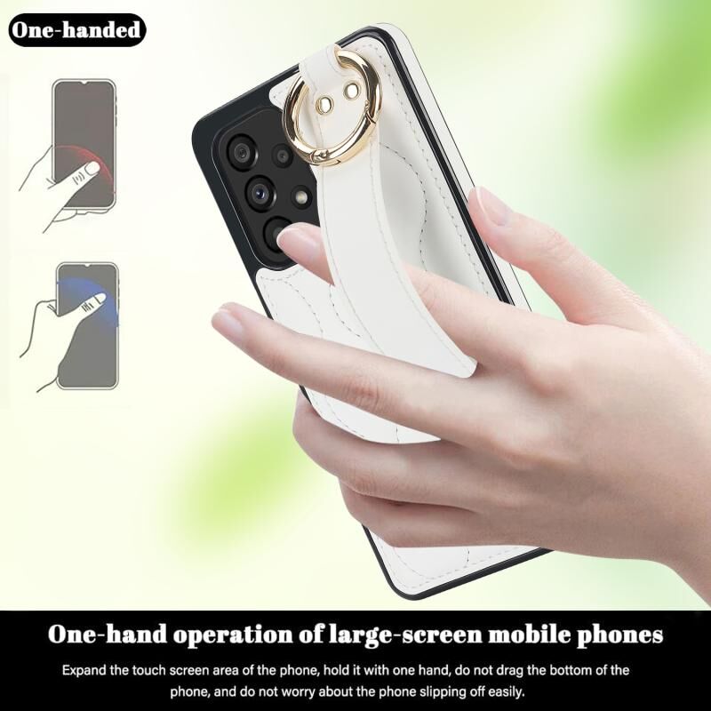 Για το Samsung Galaxy A53 5G Αντιολισθητική θήκη τηλεφώνου PU πλήρους κάλυψης με ζώνη καρπού (λευκό)