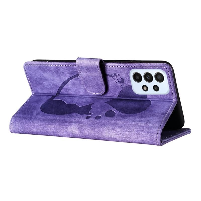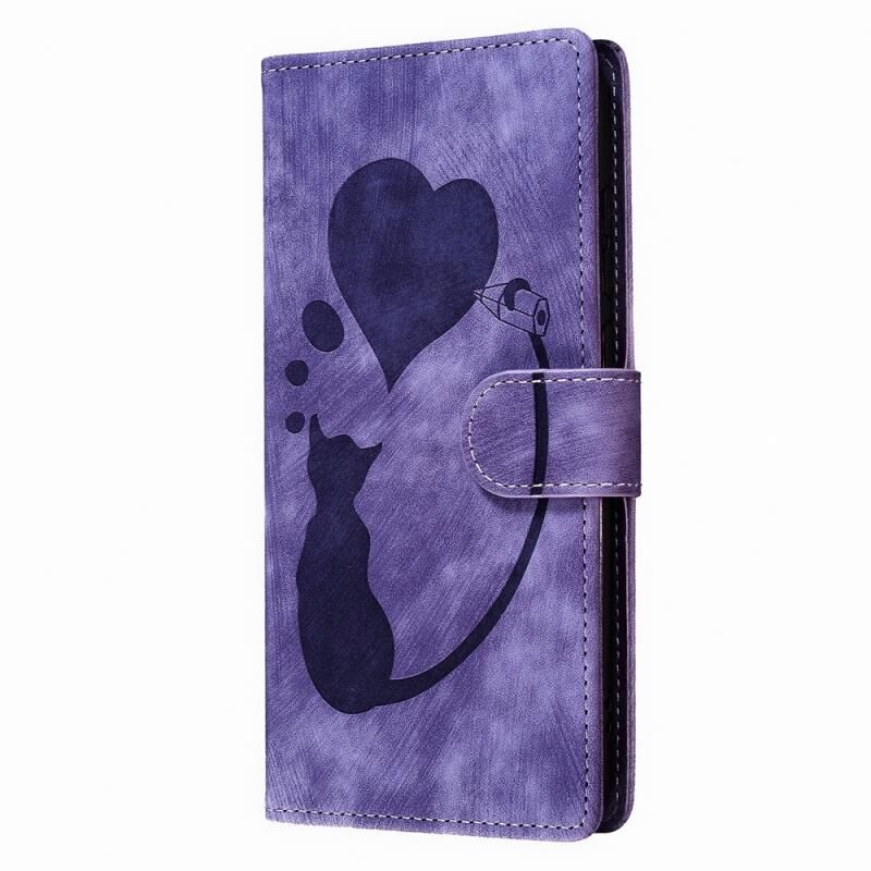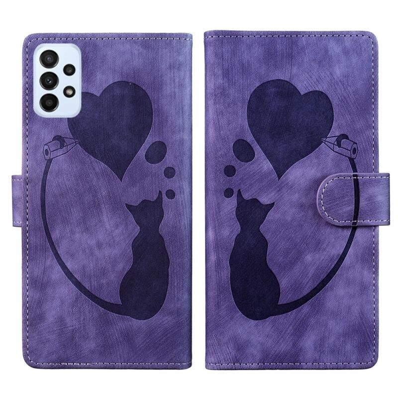 Θήκη τηλεφώνου Samsung Galaxy A53 5G με ανάγλυφο σχέδιο καρδιάς και γάτας από δέρμα (Μωβ)