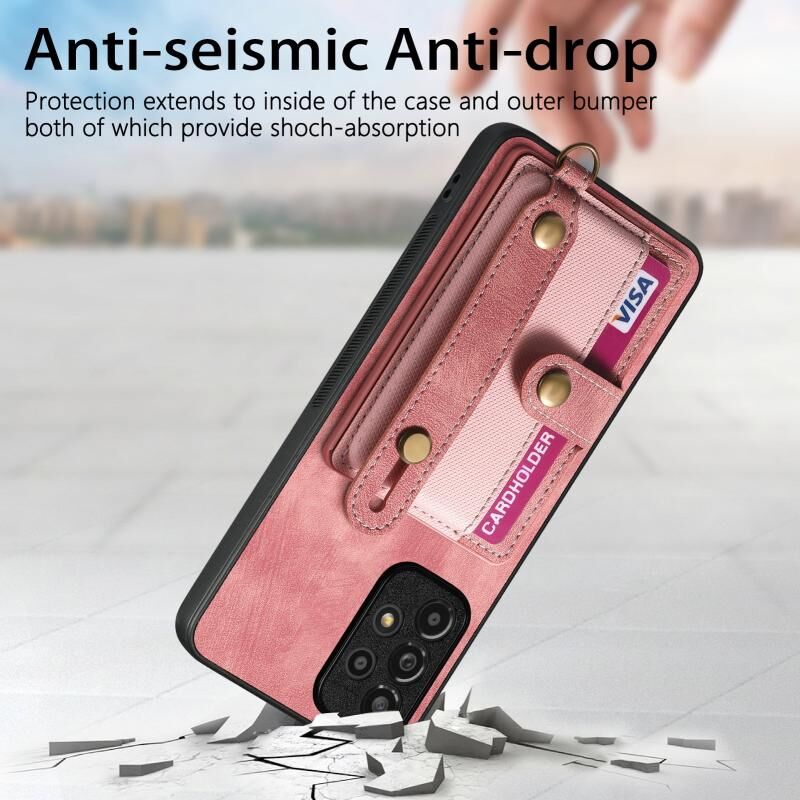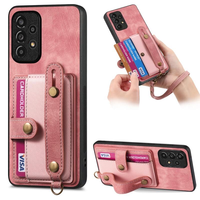 Για Samsung Galaxy A53 5G Ρετρό Σταυρός Wristband πορτοφόλι δέρμα πίσω υπόθεση τηλεφώνου (ρόζ)