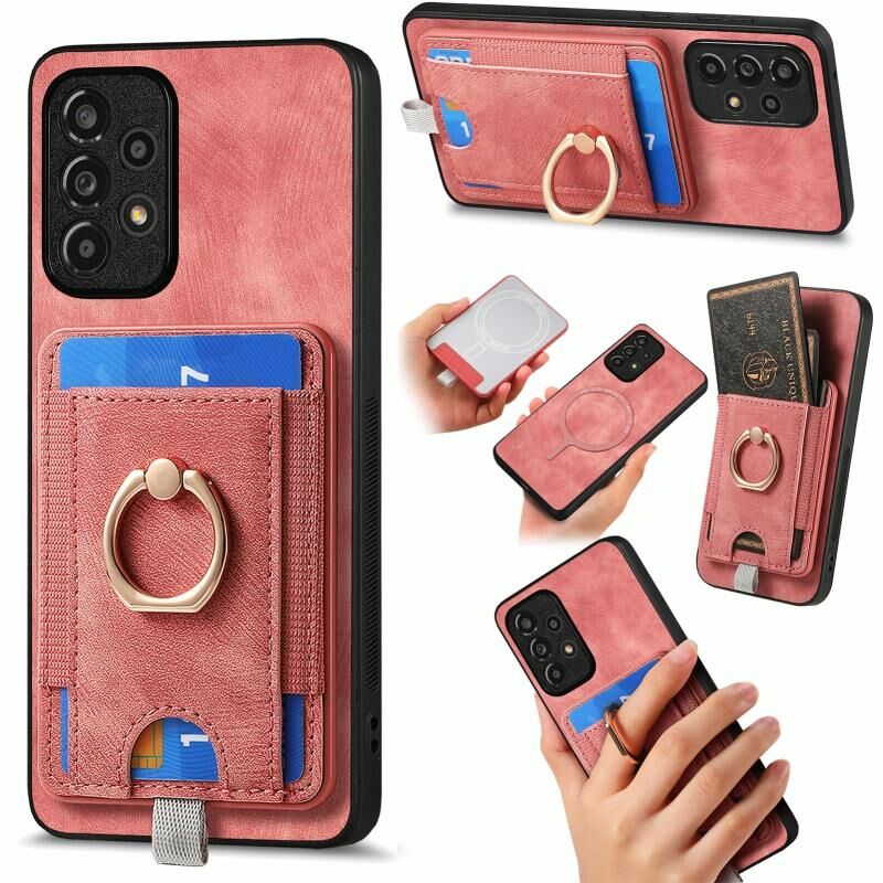 Για Samsung Galaxy A53 5G Retro Splitable μαγνητική τσάντα κάρτα τσάντα δέρμα υπόθεση τηλεφώνου (ροζ)