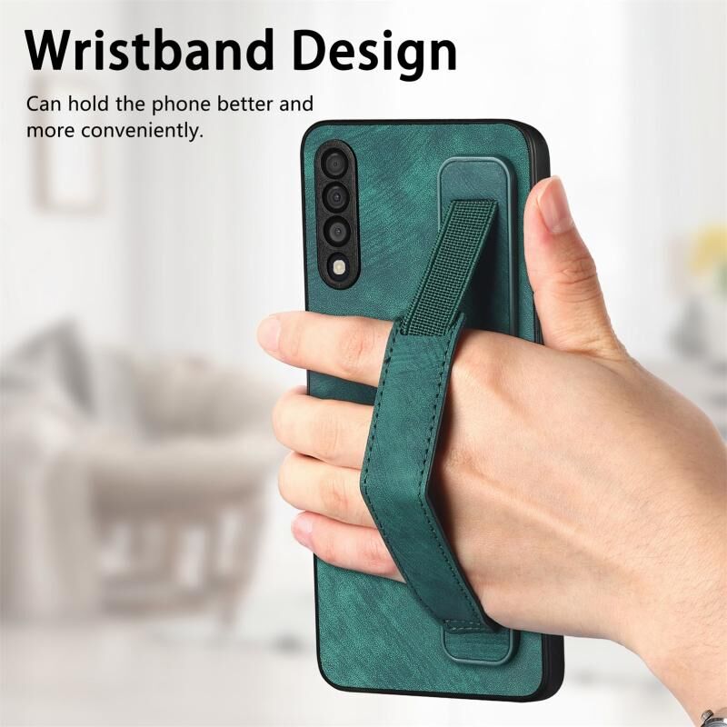 Για Samsung Galaxy A53 5G Retro Wristband κάτοχος δέρμα πίσω τηλέφωνο υπόθεση (πράσινο)