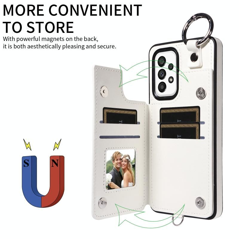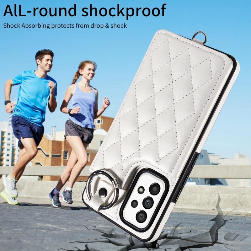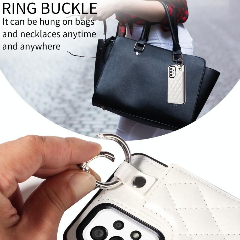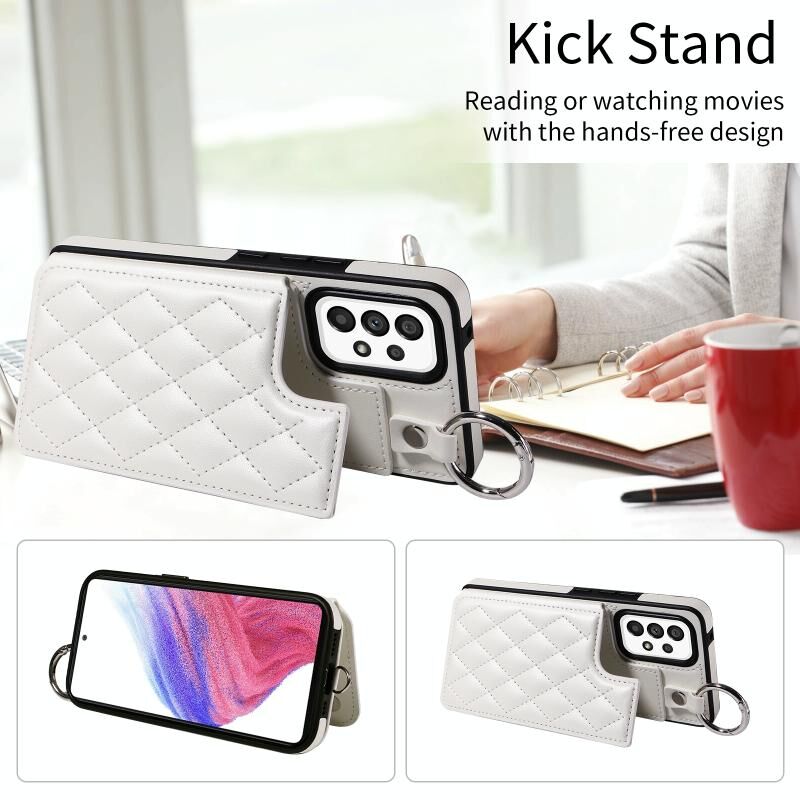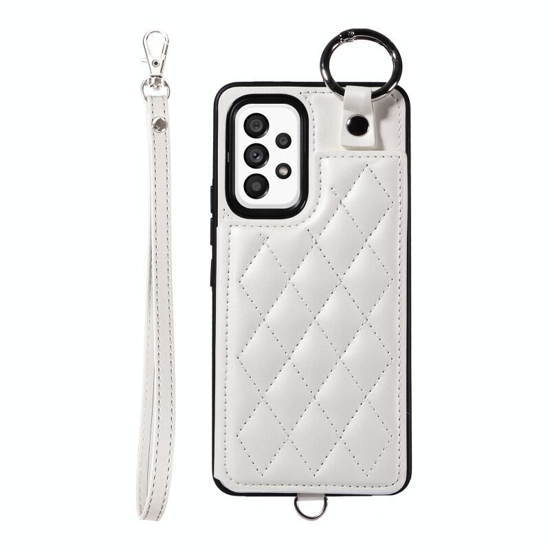 Για Samsung Galaxy A53 5G Rhombic υφή κάρτα τσάντα υπόθεση τηλεφώνου με σύντομο κορδόνι (λευκό)