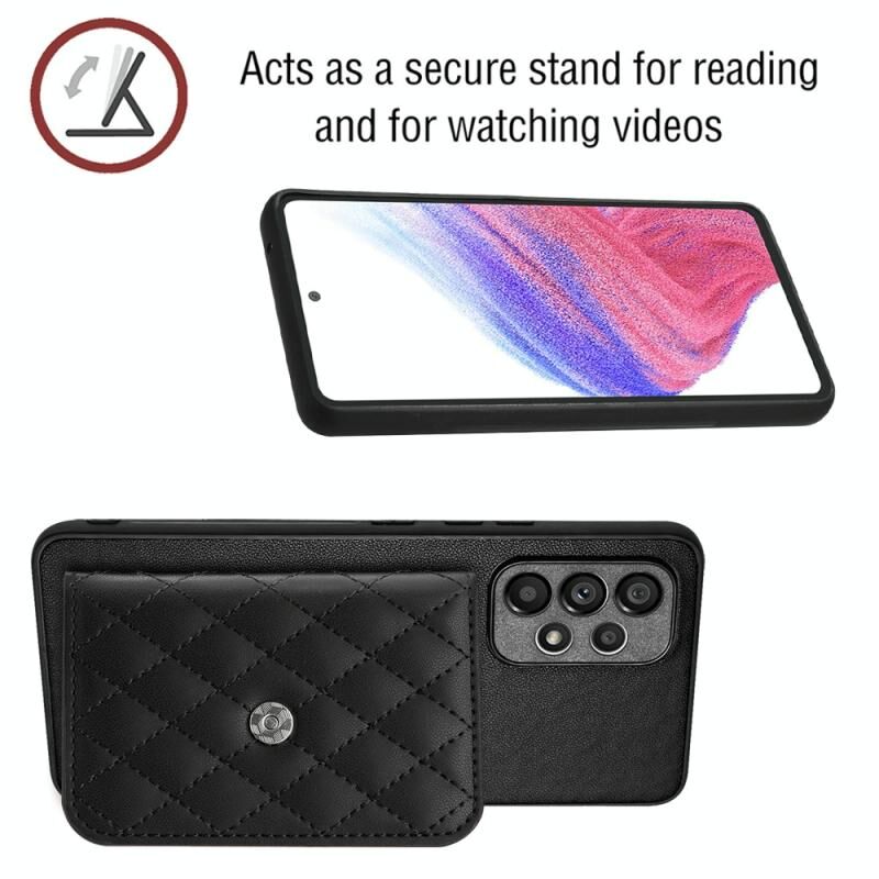 Για Samsung Galaxy A53 5G Rhombic υφή κάρτα τσάντα RFID υπόθεση τηλεφώνου με μακρύ κορδόνι (Μαύρο)