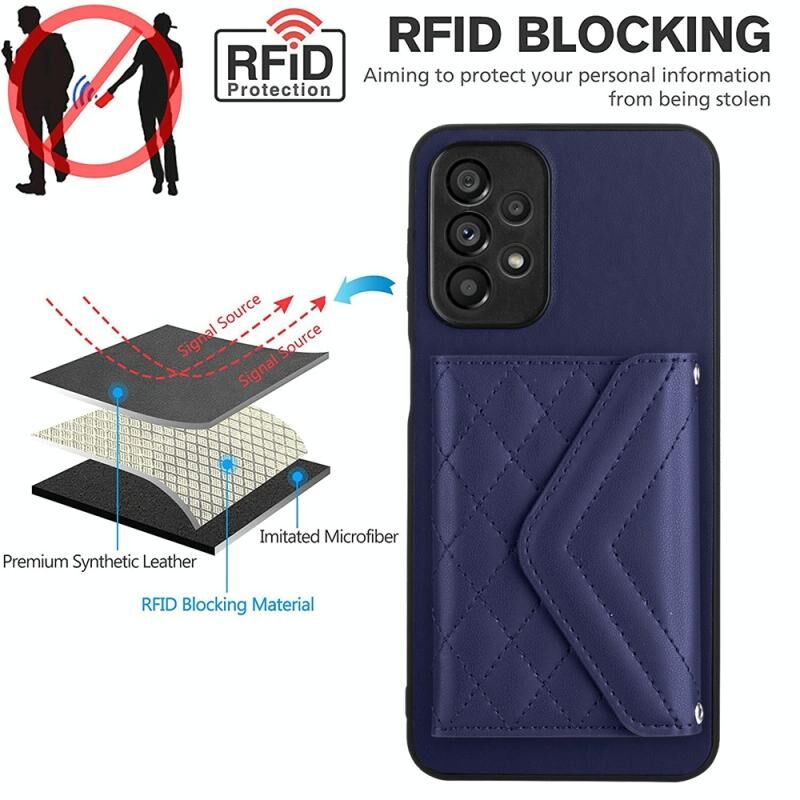 Θήκη κινητού τηλεφώνου Samsung Galaxy A53 5G με κάρτες υφής ρόμβου και μακρύ κορδόνι (Μπλε)