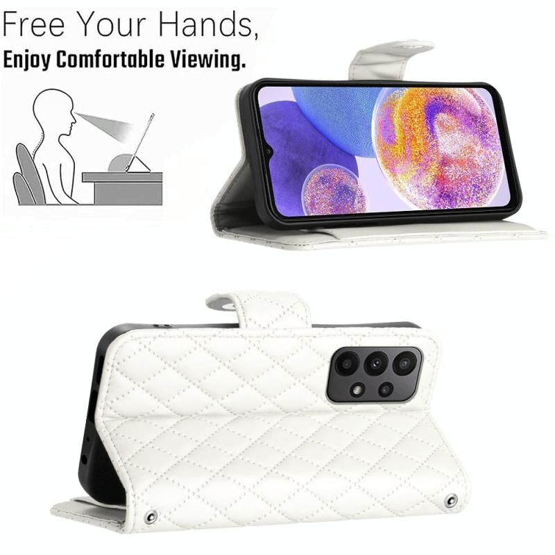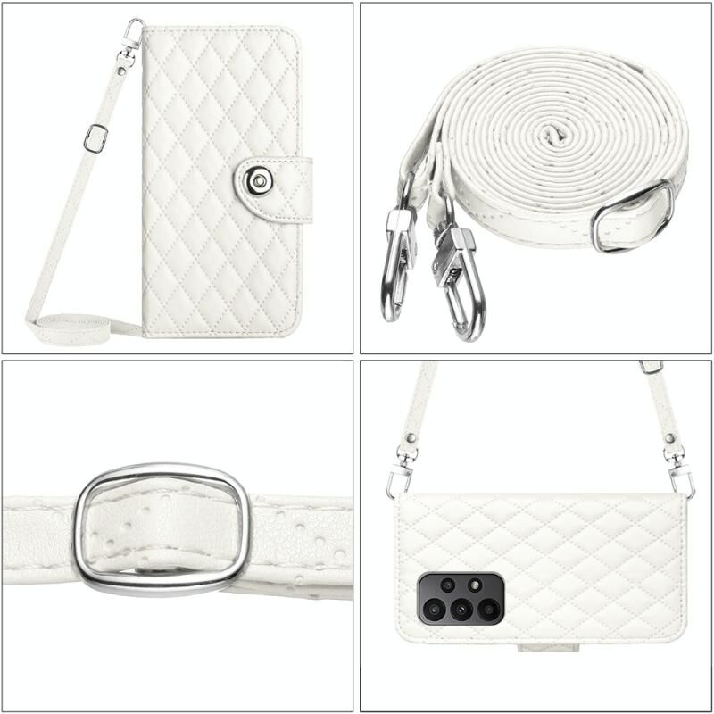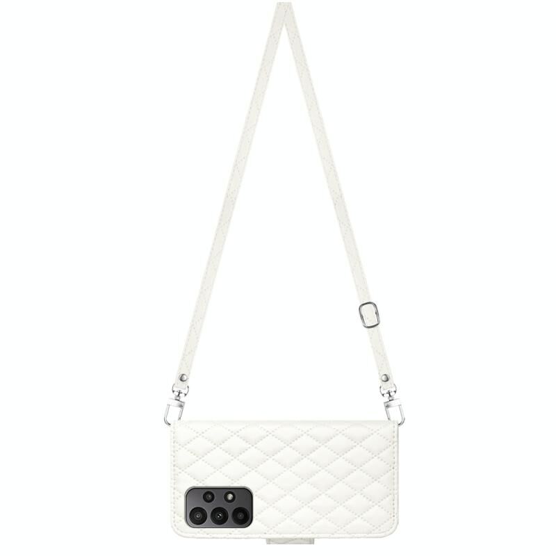 Για Samsung Galaxy A53 5G Rhombic υφή Flip δερμάτινη θήκη τηλεφώνου με μακρύ κορδόνι (λευκό)