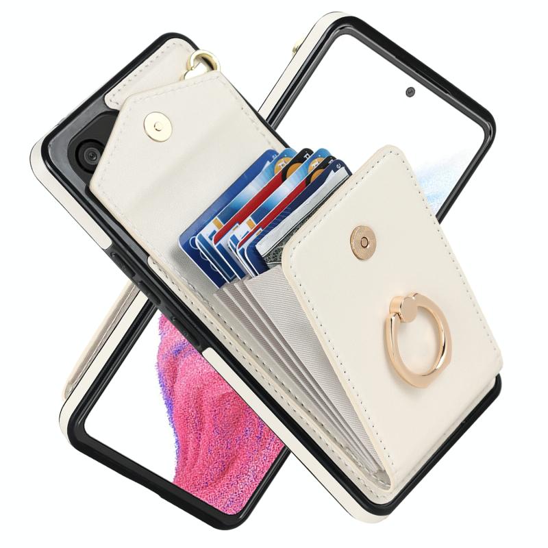 Θήκη κινητού τηλεφώνου με δακτύλιο και θήκη καρτών RFID για Samsung Galaxy A53 5G (Μπεζ)