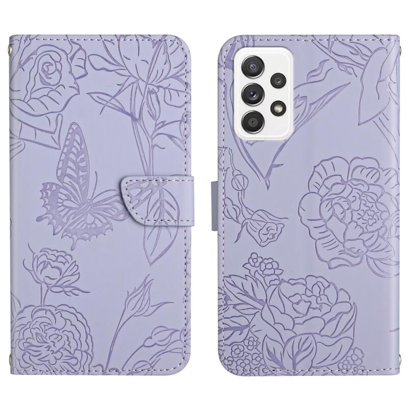 Θήκη τηλεφώνου Samsung Galaxy A53 5G με δερμάτινη υφή, ανάγλυφο σχέδιο πεταλούδας και παιώνιας (Κόκκινο)