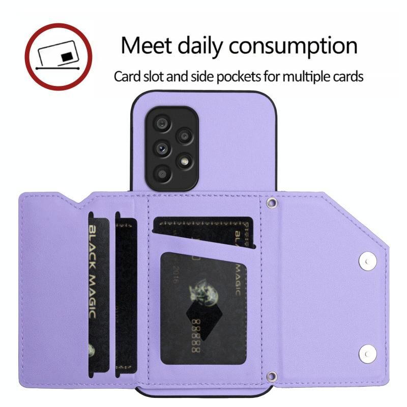 Για Samsung Galaxy A53 5G δέρμα αίσθηση τέσσερις υποδοχές κάρτα τηλέφωνο υπόθεση με λουράκι καρπού (μωβ)