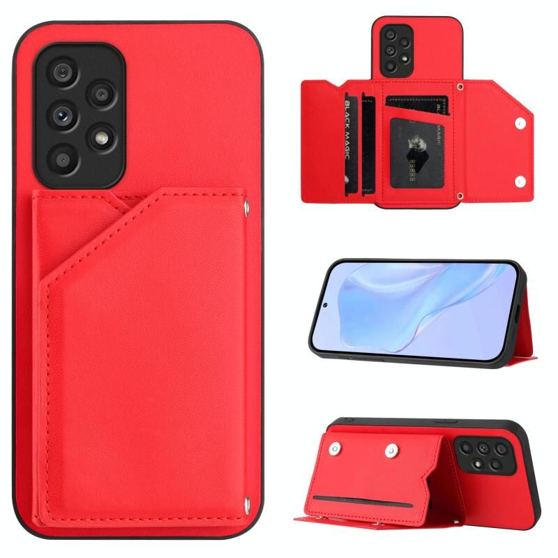 Για Samsung Galaxy A53 5G δέρμα αίσθηση τέσσερις υποδοχές κάρτα τηλέφωνο υπόθεση με λουράκι καρπού (κόκκινο)