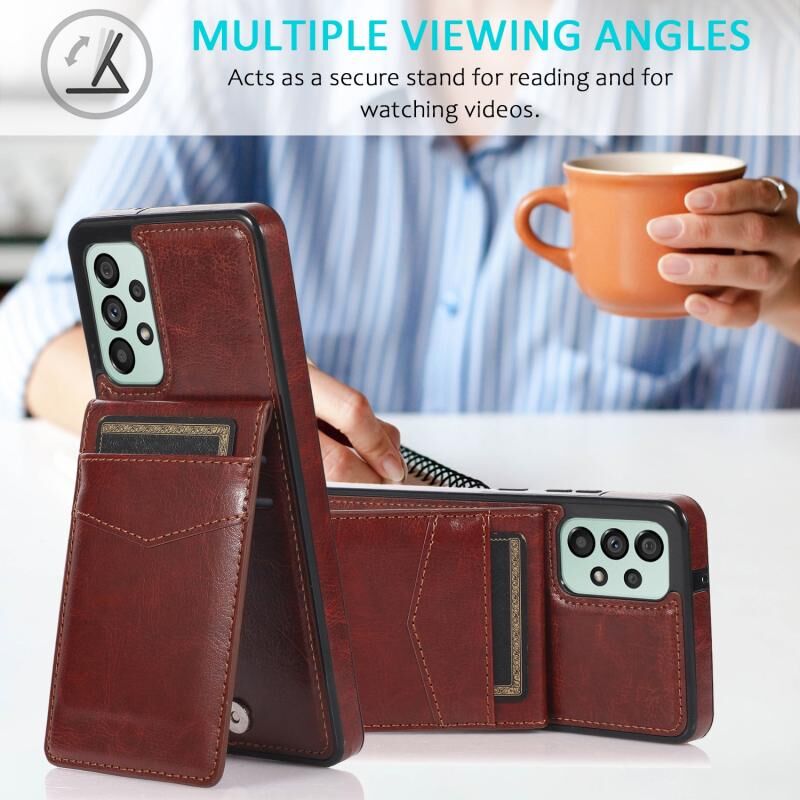 Για Samsung Galaxy A53 5G Αμιγές χρώμα PC + TPU προστατευτική θήκη με θήκη & υποδοχές για κάρτες (καφέ)
