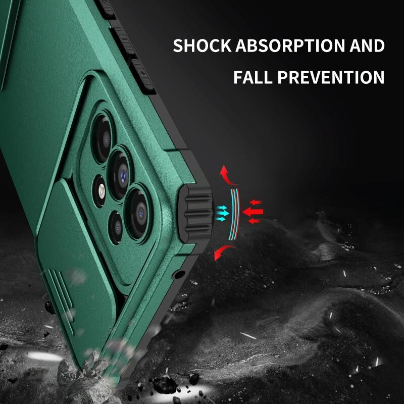 Για Samsung Galaxy A53 5G Στερεοσκοπική κάτοχος συρόμενη Camshield υπόθεση τηλεφώνου (Σκούρο πράσινο)