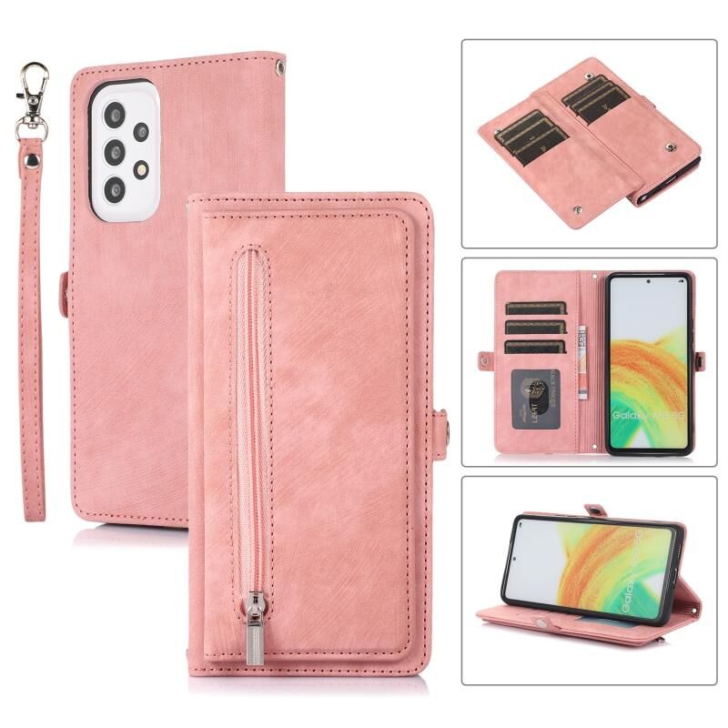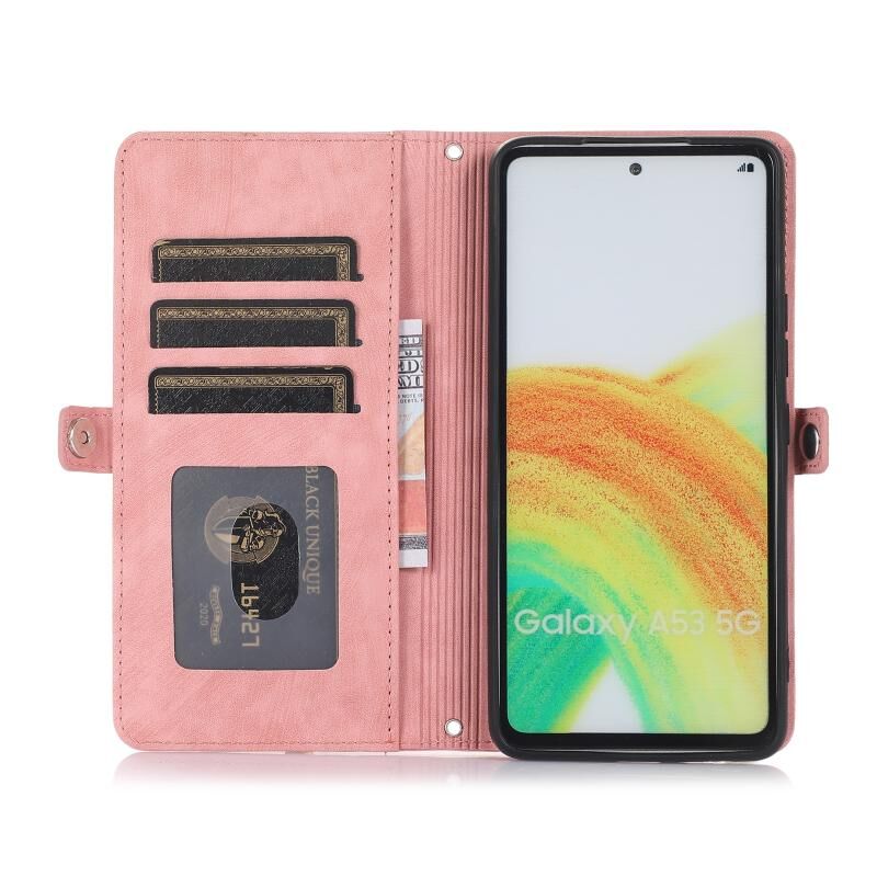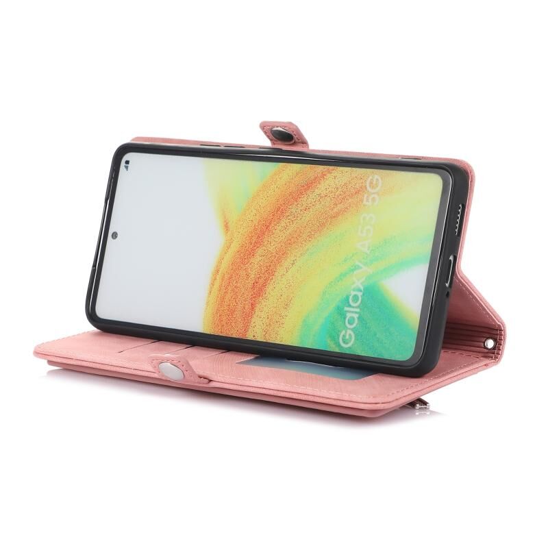 Για Samsung Galaxy A53 5G φερμουάρ κάρτα Slot πόρπη πορτοφόλι δερμάτινη θήκη τηλεφώνου (ροζ)