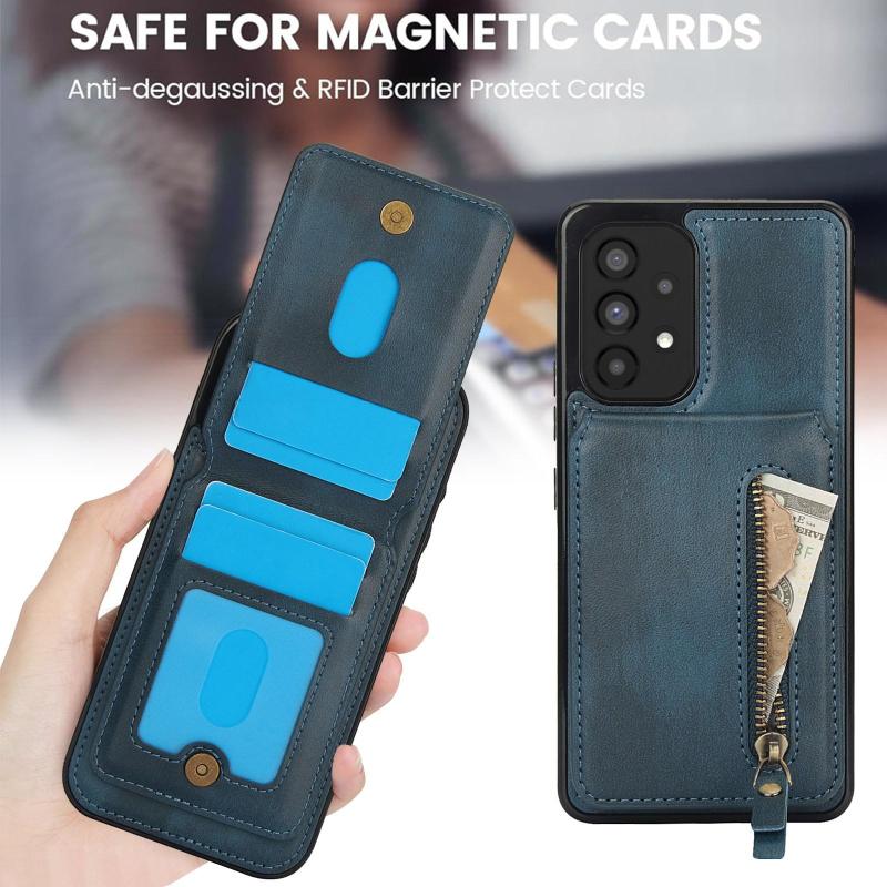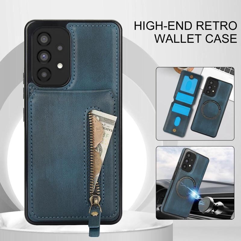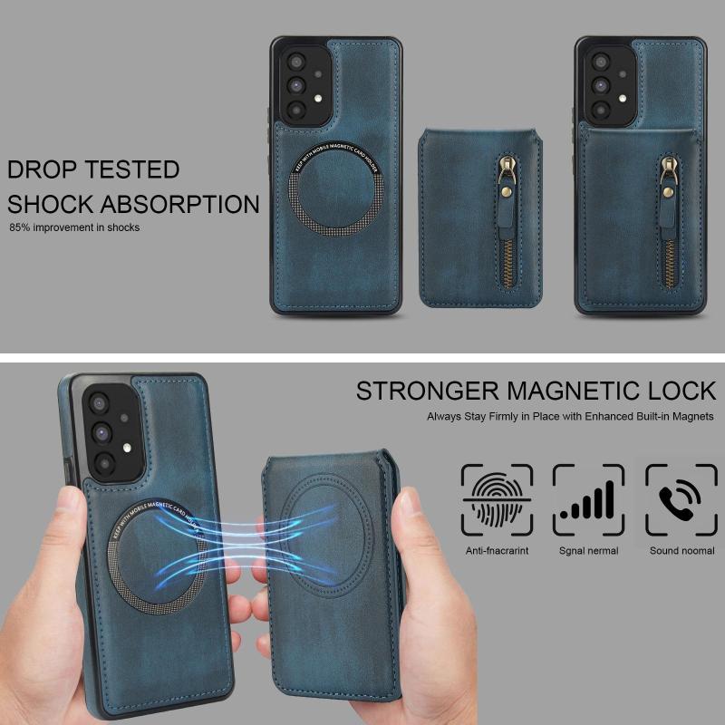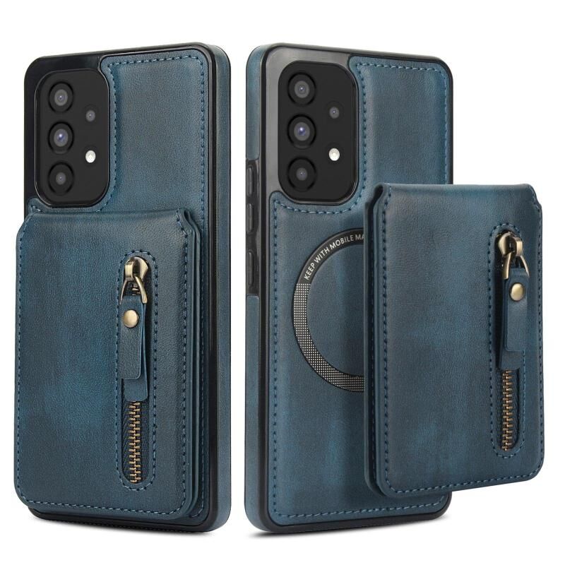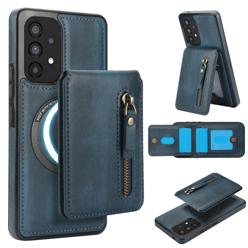 For Samsung Galaxy A53 5G Zipper Wallet Split MagSafe Leather Back Phone Case(Blue)