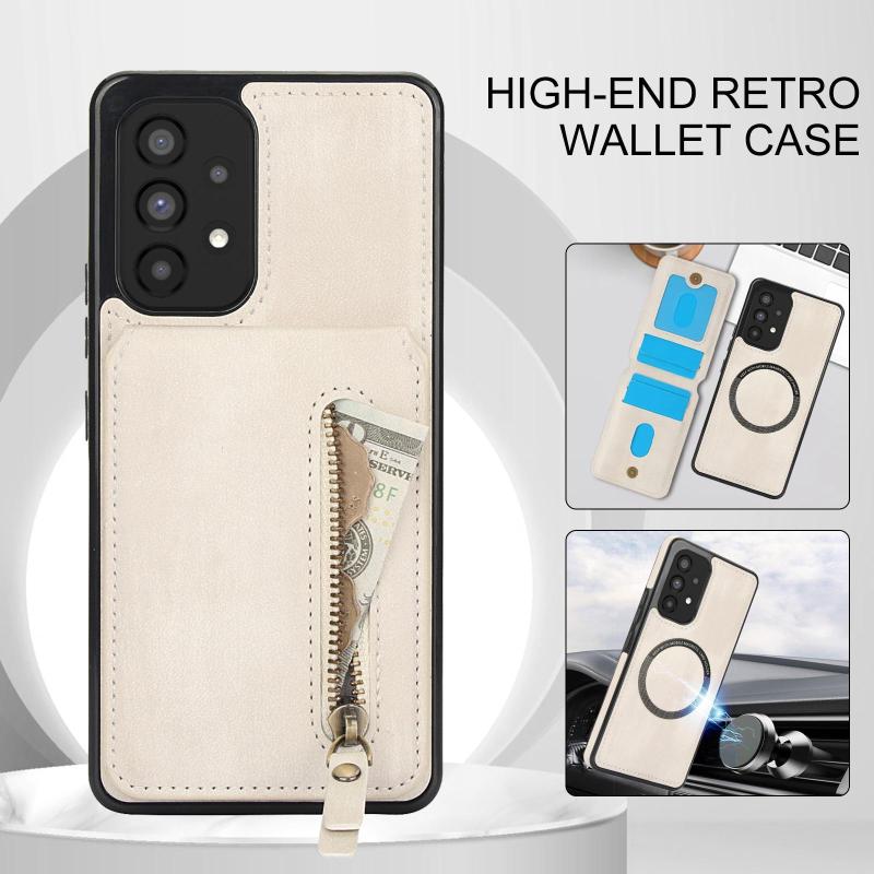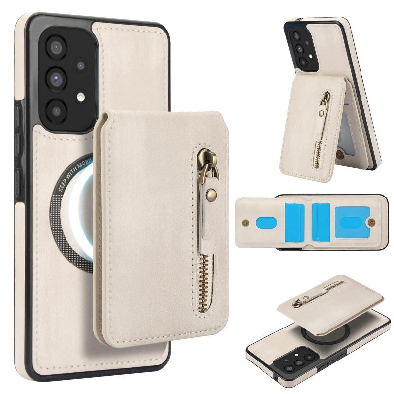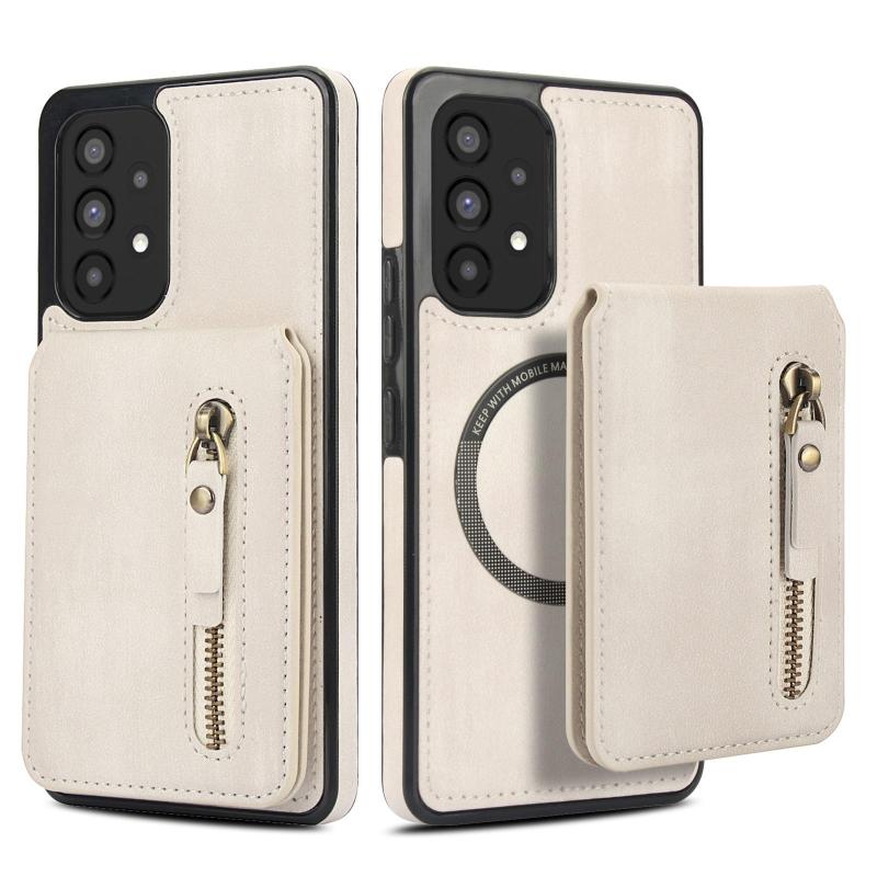 For Samsung Galaxy A53 5G Zipper Wallet Split MagSafe Leather Back Phone Case(White)