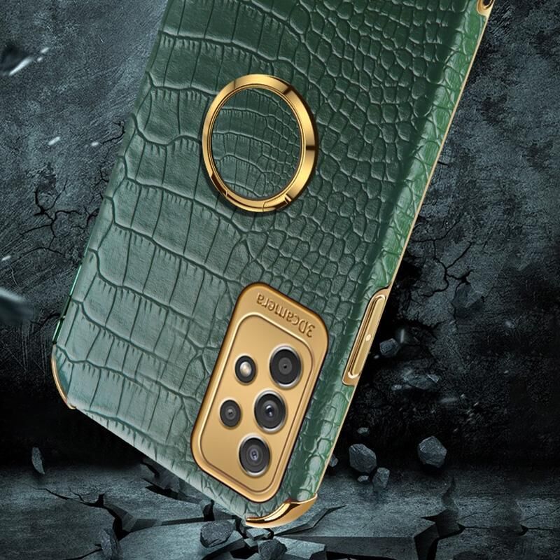 Θήκη κινητού τηλεφώνου Samsung Galaxy A53 6D με ηλεκτρολυτική επίστρωση, υφή κροκόδειλου και βάση στήριξης (πράσινο)