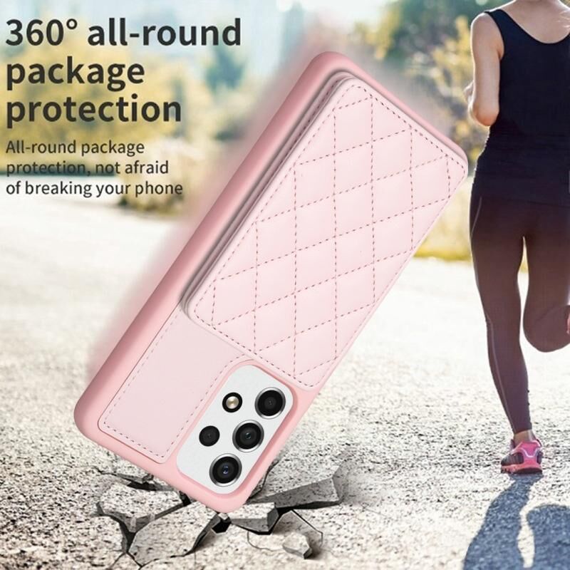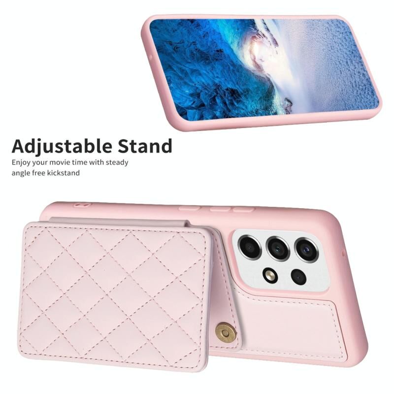Για Samsung Galaxy A53 BF25 τετράγωνο καρό κάρτα τσάντα κάτοχος υπόθεση τηλεφώνου (ρόζ)