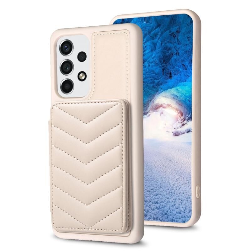 Για Samsung Galaxy A53 BF26 Wave μοτίβο κάρτας τσάντα κάτοχος υπόθεση τηλεφώνου (Μπεζ)