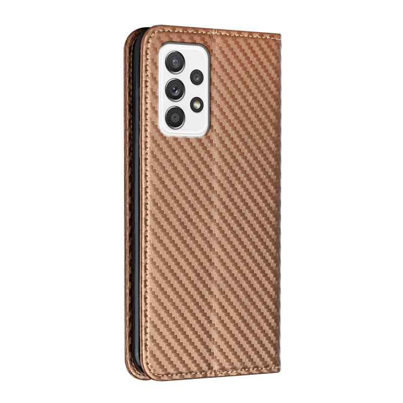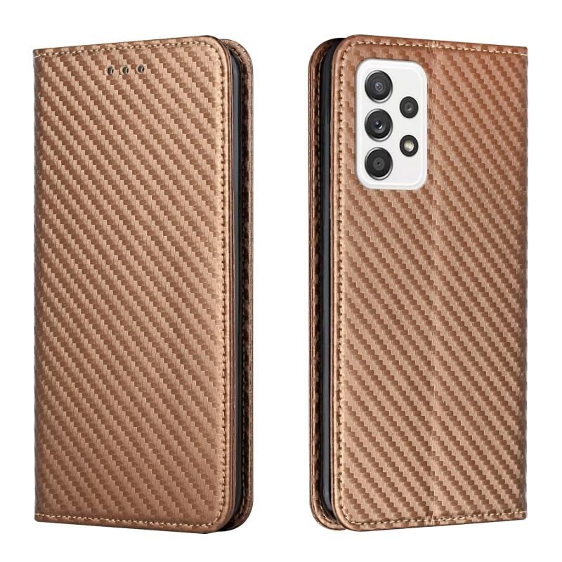 Θήκη τηλεφώνου Samsung Galaxy A53 από δέρμα με υφή ανθρακονημάτων και πτυσσόμενη βάση (Καφέ)