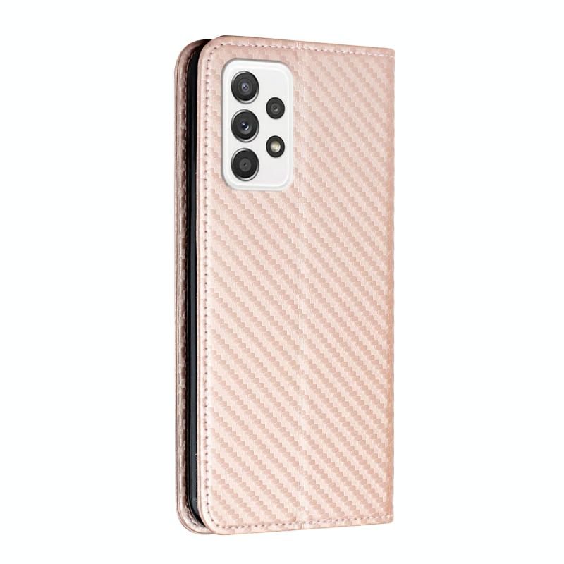For Samsung Galaxy A53 Carbon Fiber Texture Flip Holder Leather Phone Case(Rose Gold)