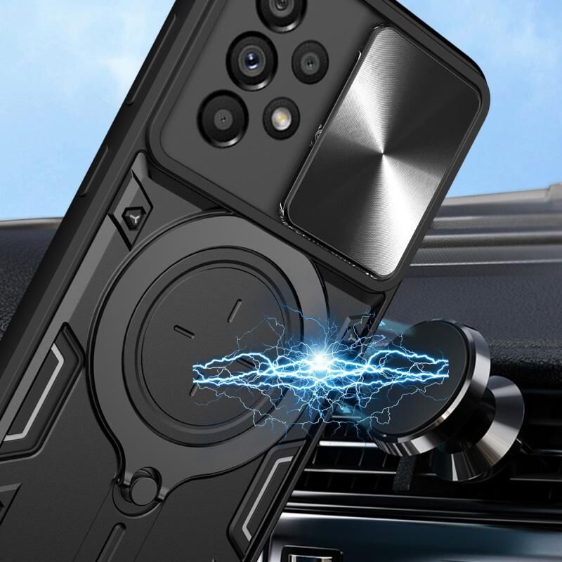 Θήκη κινητού τηλεφώνου για Samsung Galaxy A53 με υφή CD, συρόμενο προστατευτικό κάμερας και μαγνητική βάση (Ροζ)