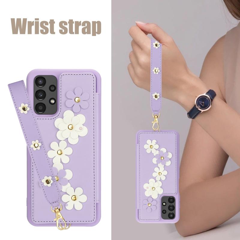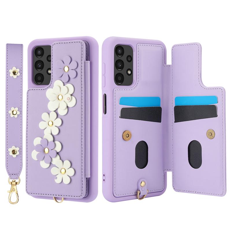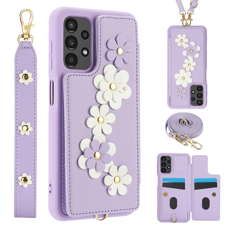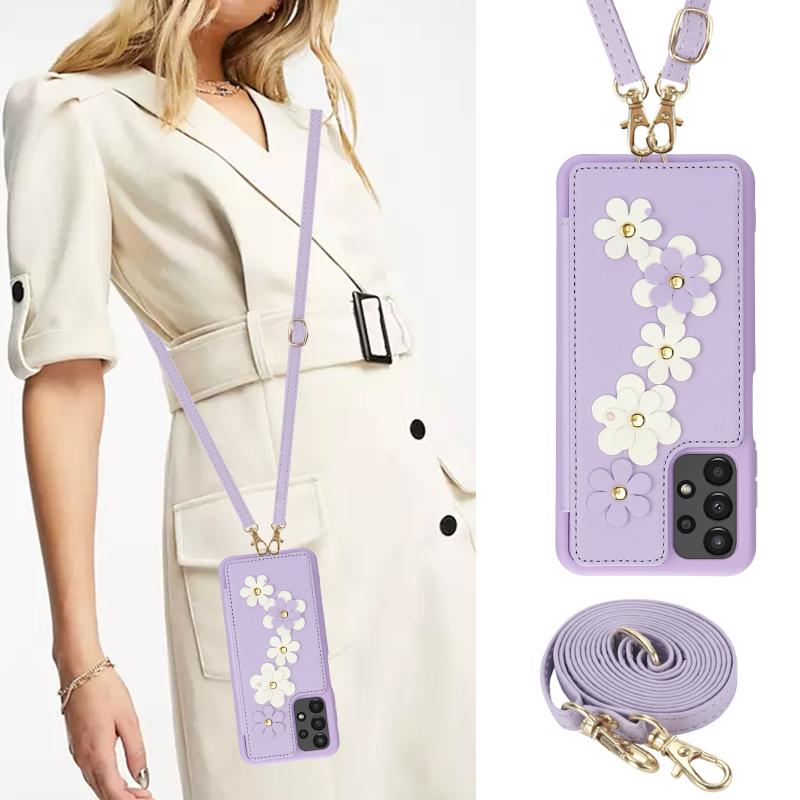 For Samsung Galaxy A53 Crossbody Flower Pattern Leather Phone Case(Purple)