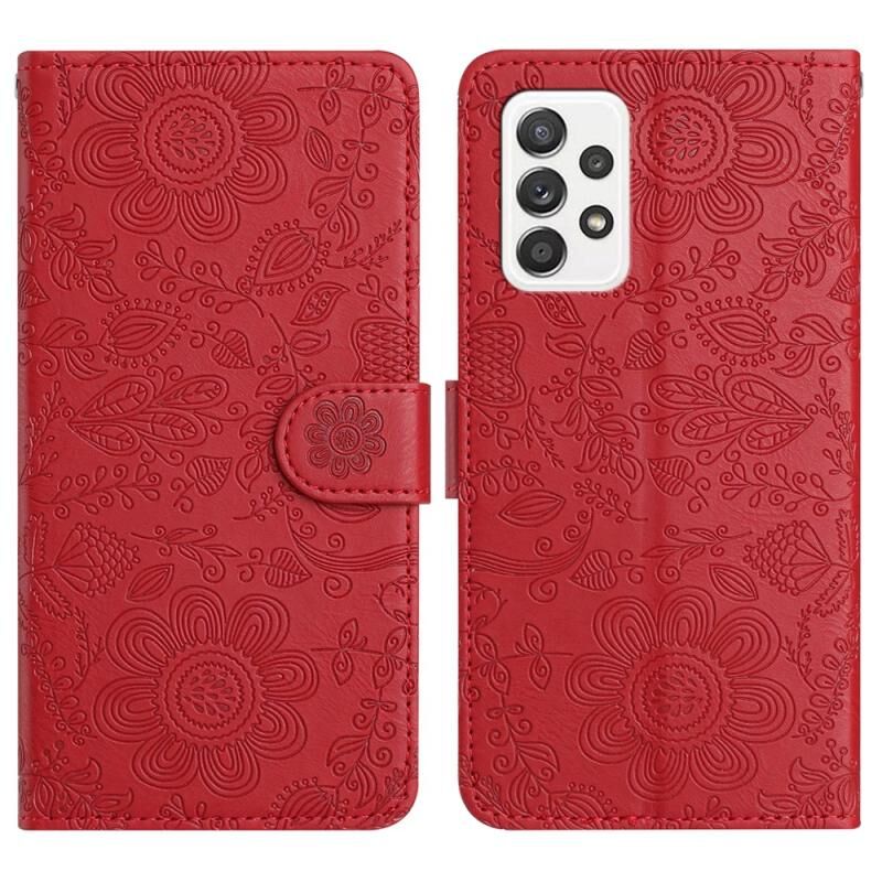Για Samsung Galaxy A53 Floral ανάγλυφο μοτίβο δερμάτινη θήκη τηλεφώνου (Κόκκινο)