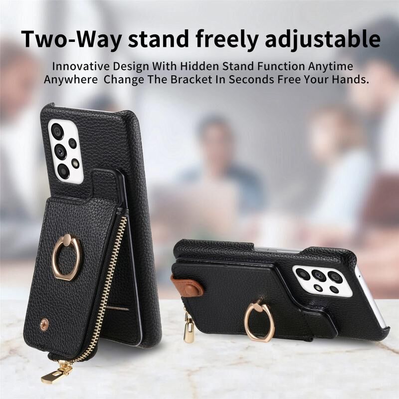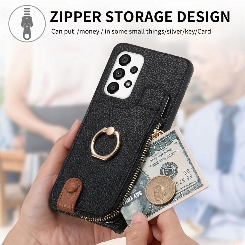 Για Samsung Galaxy A53 Litchi δέρμα λάδι Edge δαχτυλίδι φερμουάρ πορτοφόλι πίσω υπόθεση τηλεφώνου (μαύρο)