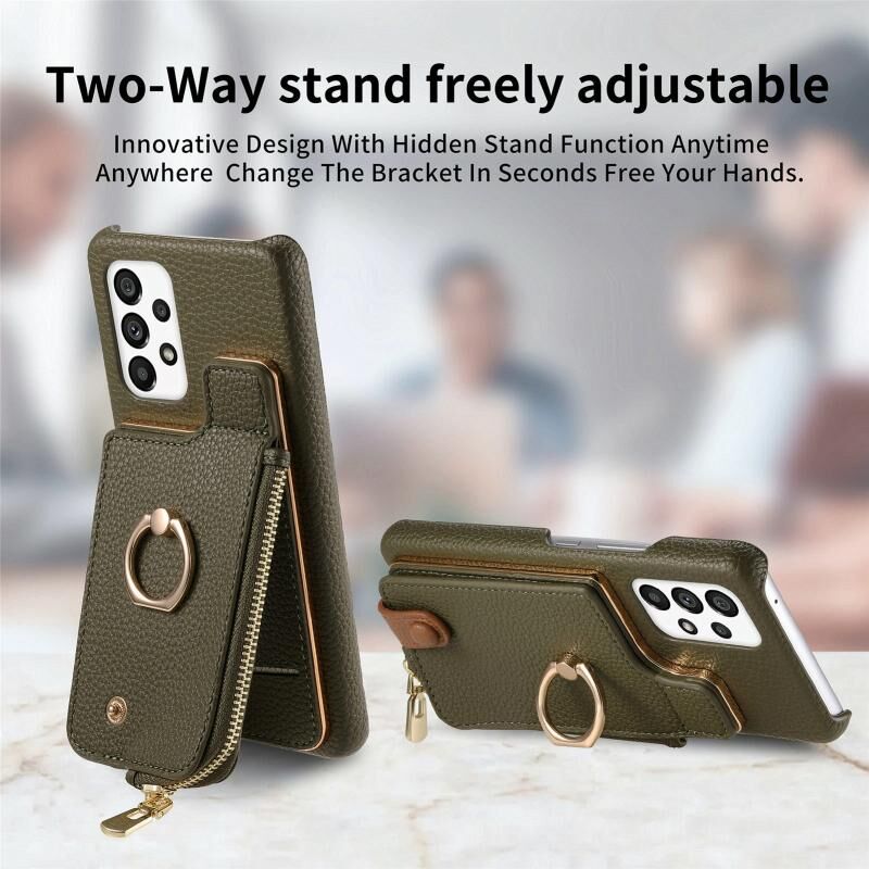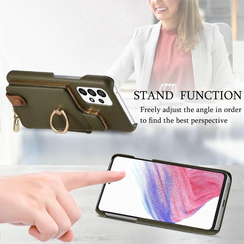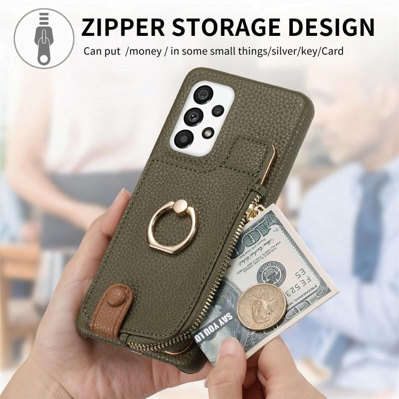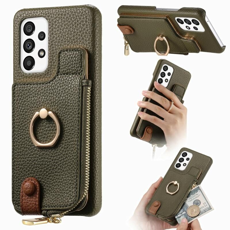 Για Samsung Galaxy A53 Litchi δέρμα λάδι Edge δαχτυλίδι φερμουάρ πορτοφόλι πίσω υπόθεση τηλεφώνου (πράσινο)