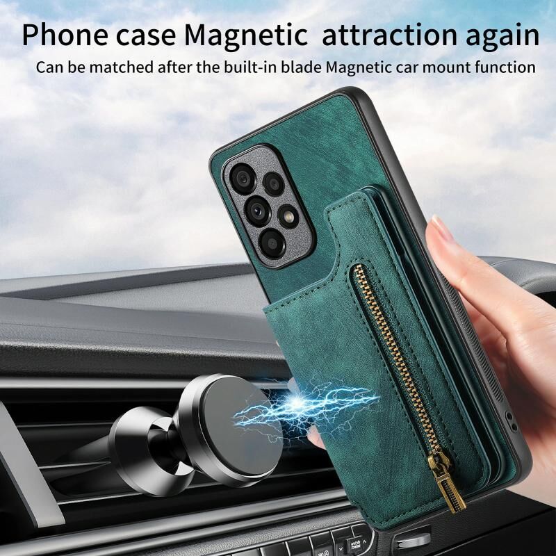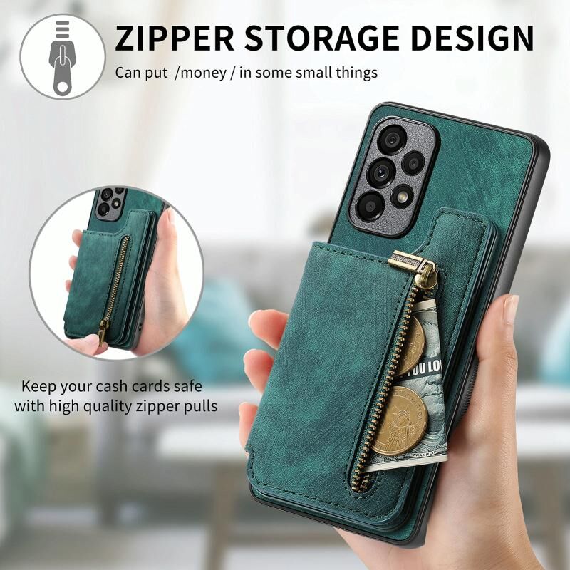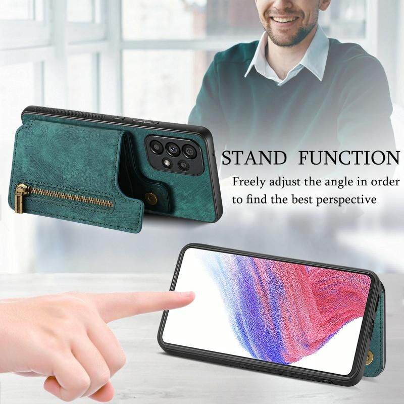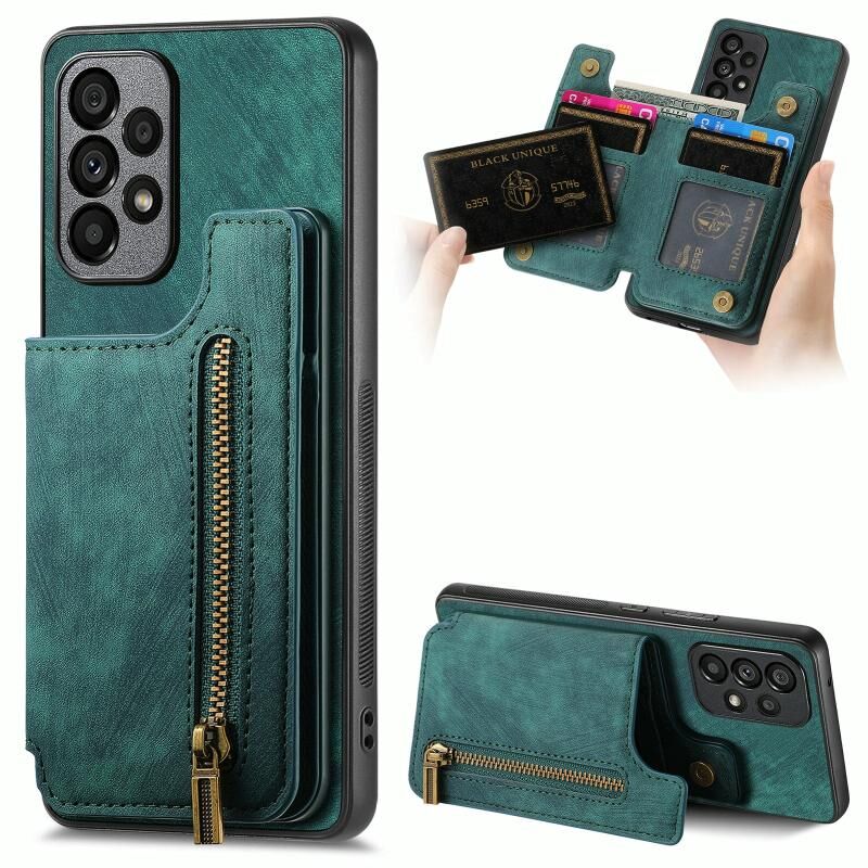 Για Samsung Galaxy A53 Ρετρό δέρμα φερμουάρ πορτοφόλι πίσω θήκη τηλεφώνου (πράσινο)