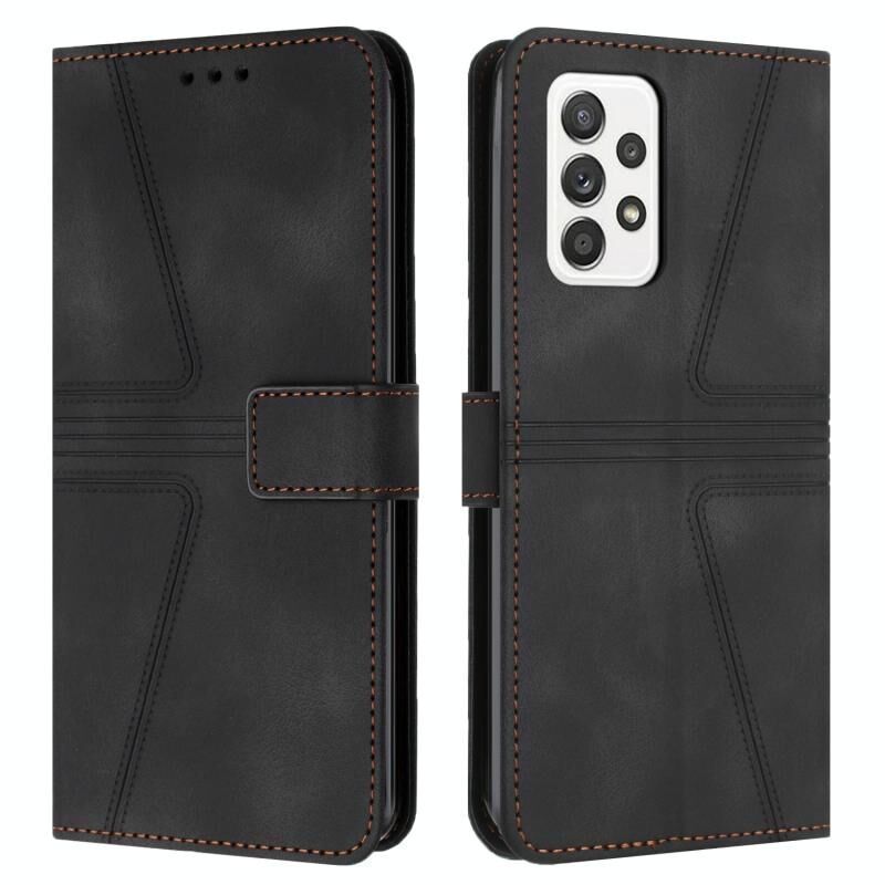 Για Samsung Galaxy A53 Τρίγωνο στερεό χρώμα δερμάτινη θήκη τηλεφώνου (μαύρο)