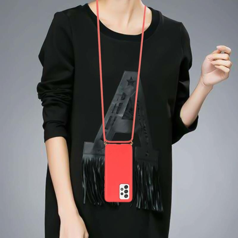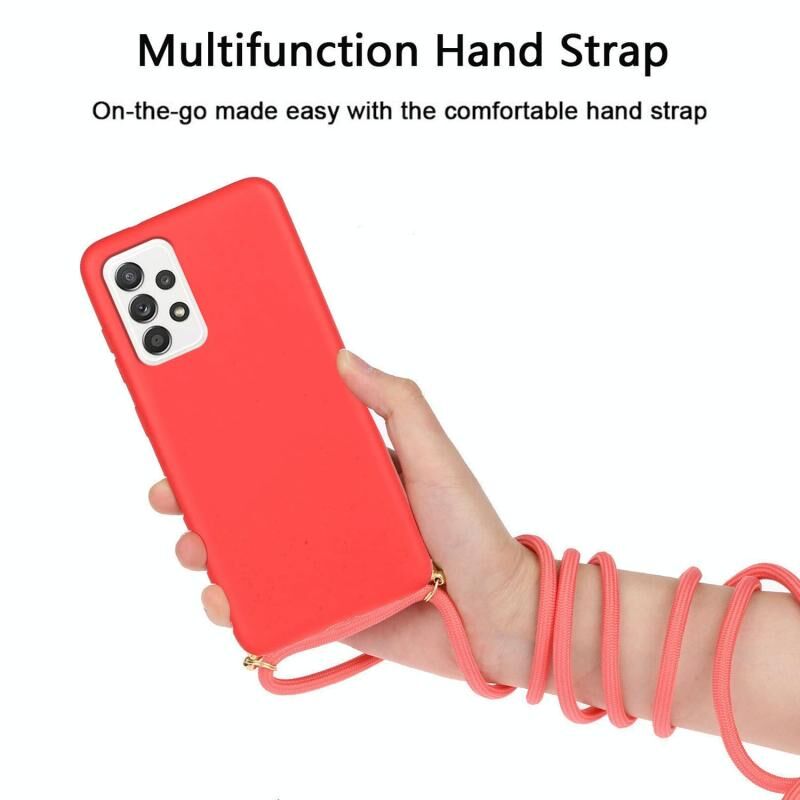 Για το Samsung Galaxy A53 Υλικό από άχυρο σιταριού + προστατευτική θήκη TPU με κορδόνι (κόκκινο)
