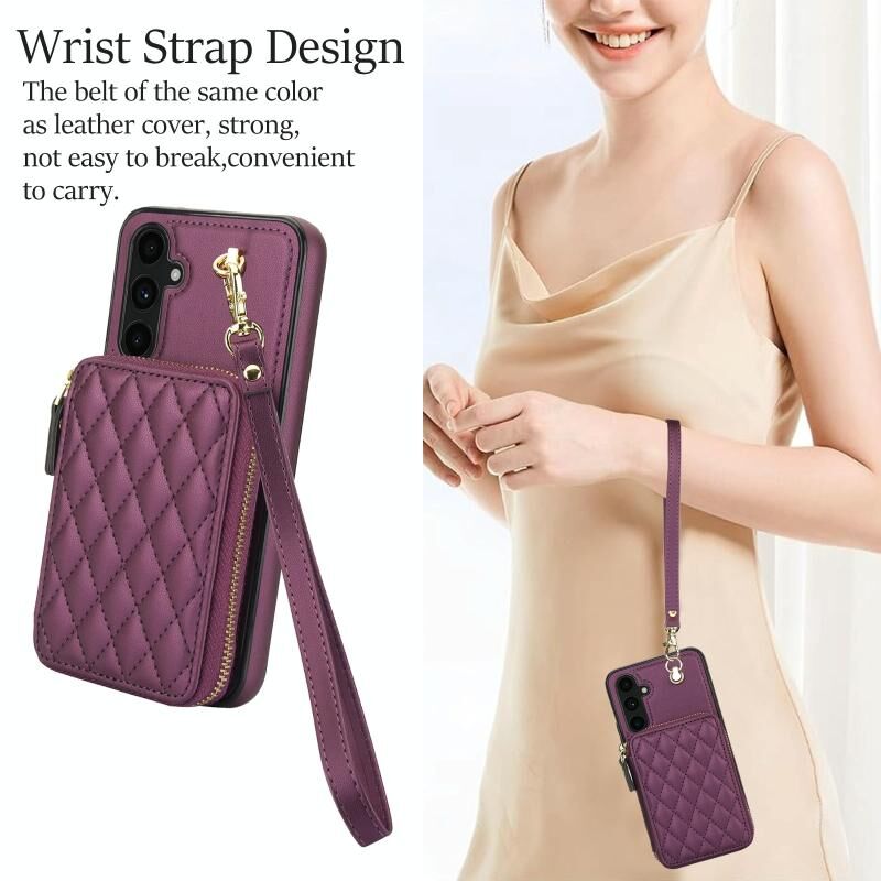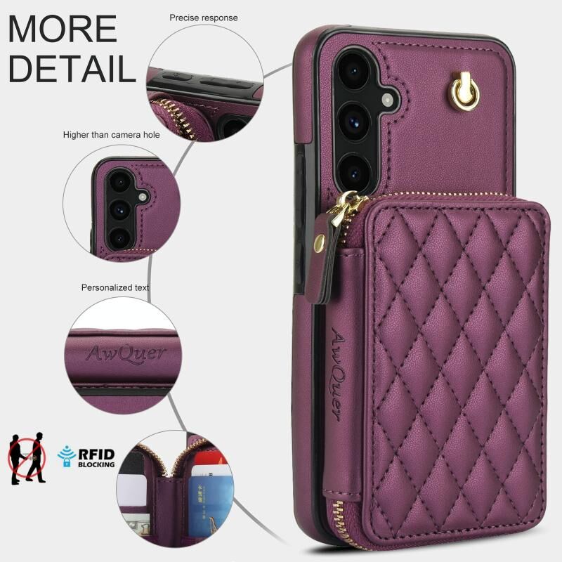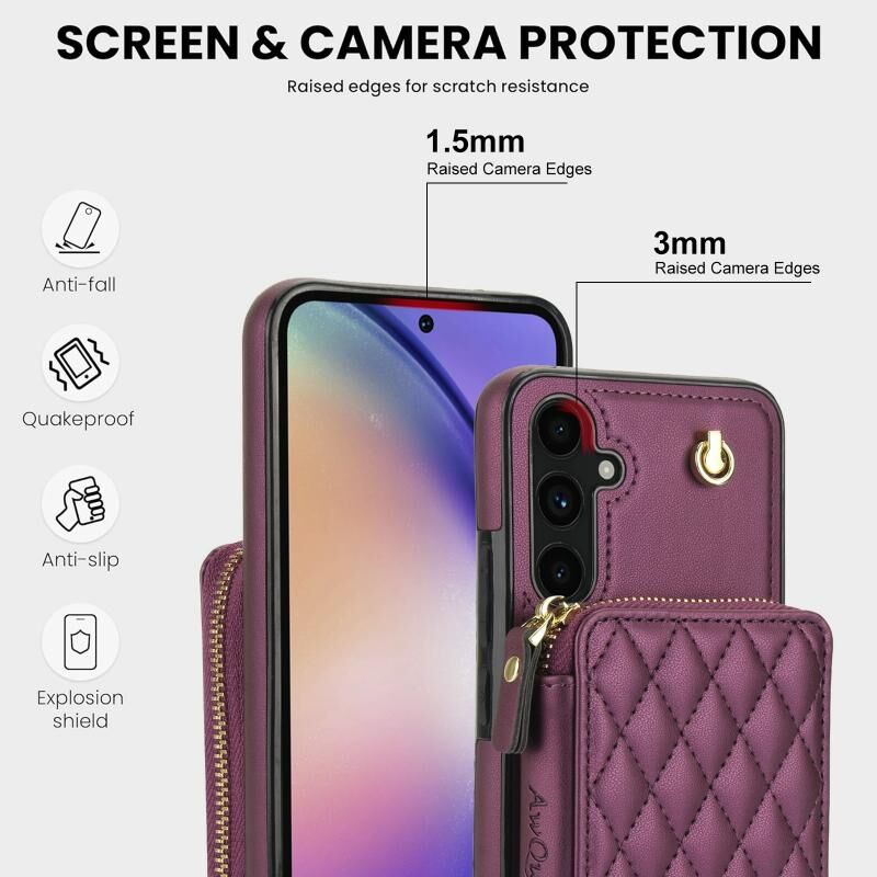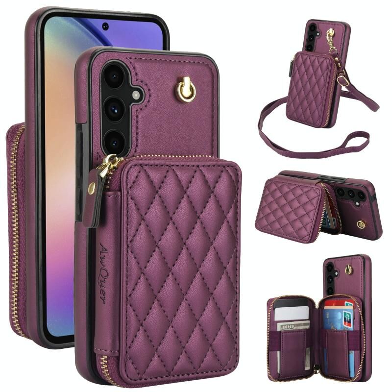 Θήκη κινητού τηλεφώνου AwQuer Crossbody με φερμουάρ και δερμάτινη πλάτη σε ρόμβους για Samsung Galaxy A54 4G / 5G (Μαύρο) (Awquer)