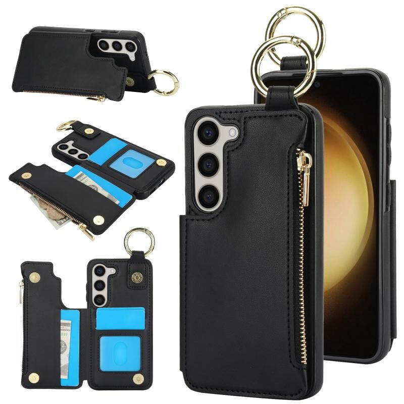 Για Samsung Galaxy A54 4G / 5G RFlD Anti-theft Διπλό πόρπη δαχτυλίδι φερμουάρ τηλέφωνο υπόθεση κάρτας (Μαύρο)