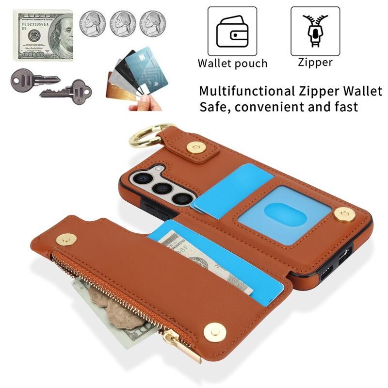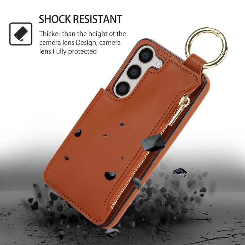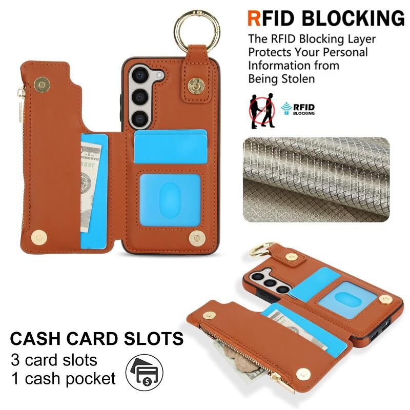 Για Samsung Galaxy A54 4G / 5G RFlD Anti-theft Διπλό πόρπη δαχτυλίδι φερμουάρ τηλέφωνο υπόθεση κάρτα (καφέ)