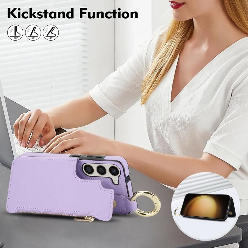 Για Samsung Galaxy A54 4G / 5G RFlD Anti-theft Διπλό πόρπη δαχτυλίδι φερμουάρ τηλέφωνο υπόθεση κάρτα (μωβ)