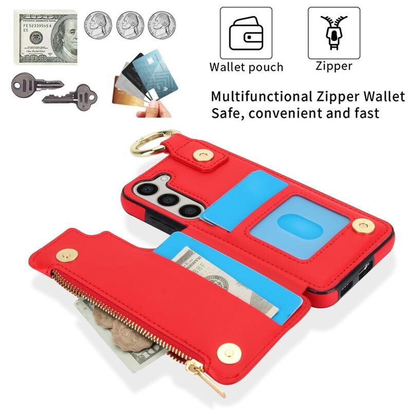 Για Samsung Galaxy A54 4G / 5G RFlD Anti-theft Διπλό πόρπη δαχτυλίδι φερμουάρ τηλέφωνο υπόθεση κάρτα (κόκκινο)