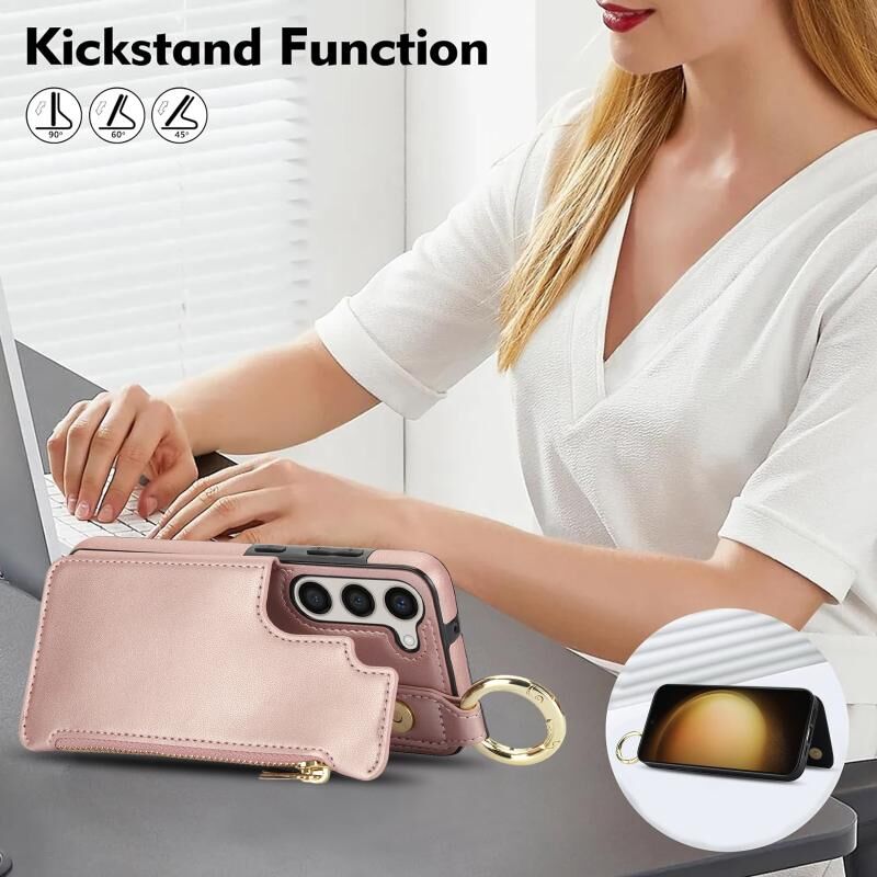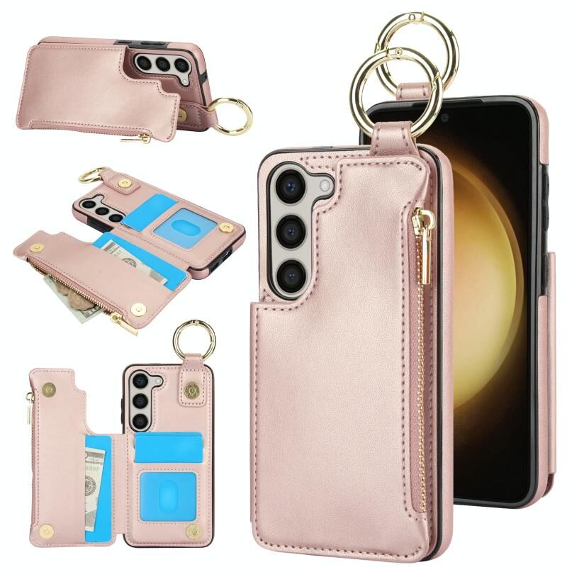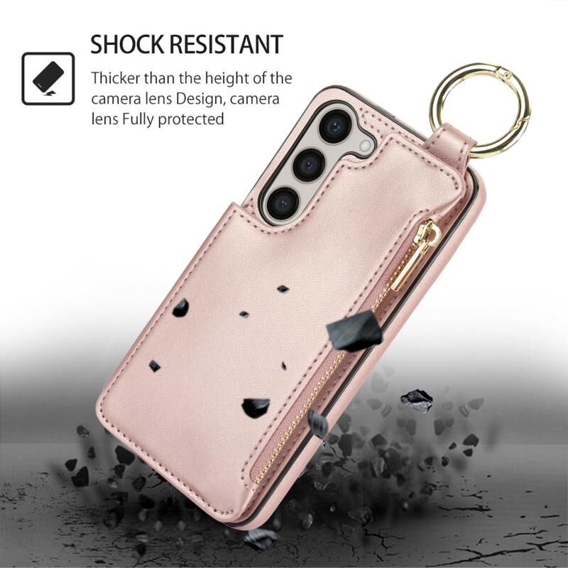 Για Samsung Galaxy A54 4G / 5G RFlD Anti-theft Διπλό πόρπη δαχτυλίδι φερμουάρ τηλέφωνο υπόθεση κάρτα (Rose Gold)