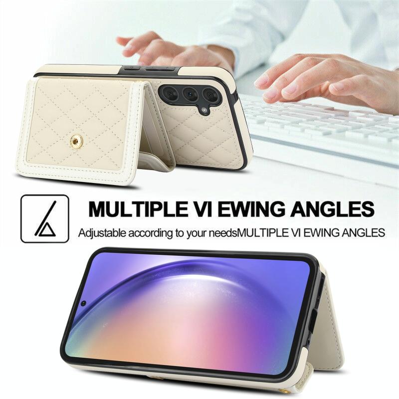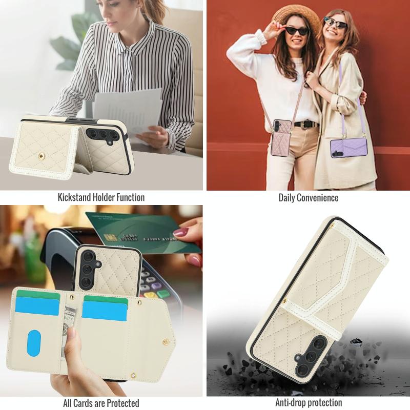 For Samsung Galaxy A54 4G / 5G Splicing Rhombic Texture Card Bag Phone Case with Long Lanyard(Beige)