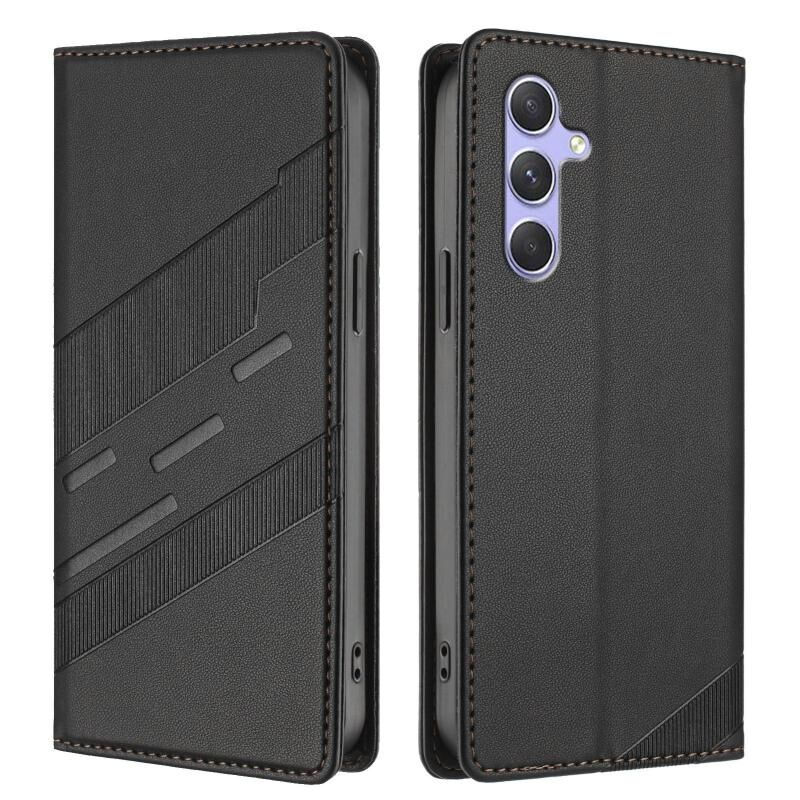 Θήκη τηλεφώνου Samsung Galaxy A54 4G, δερμάτινη, ανάγλυφη, πολυλειτουργική, τύπου πορτοφολιού (Μαύρο)